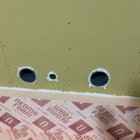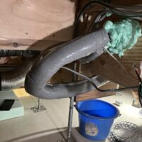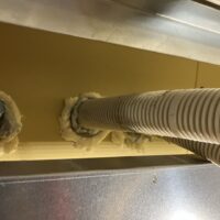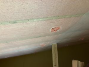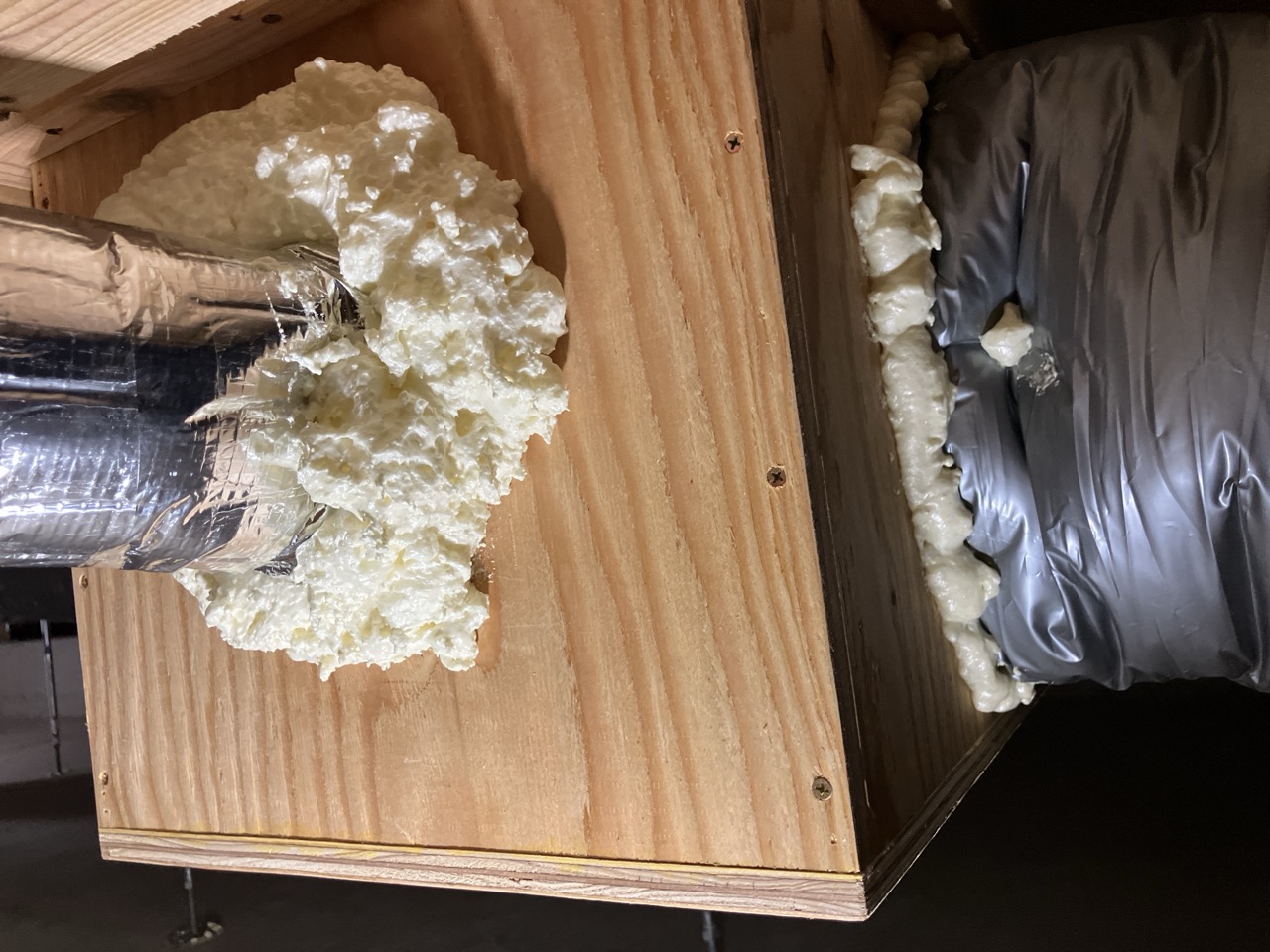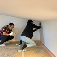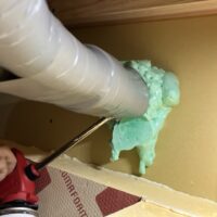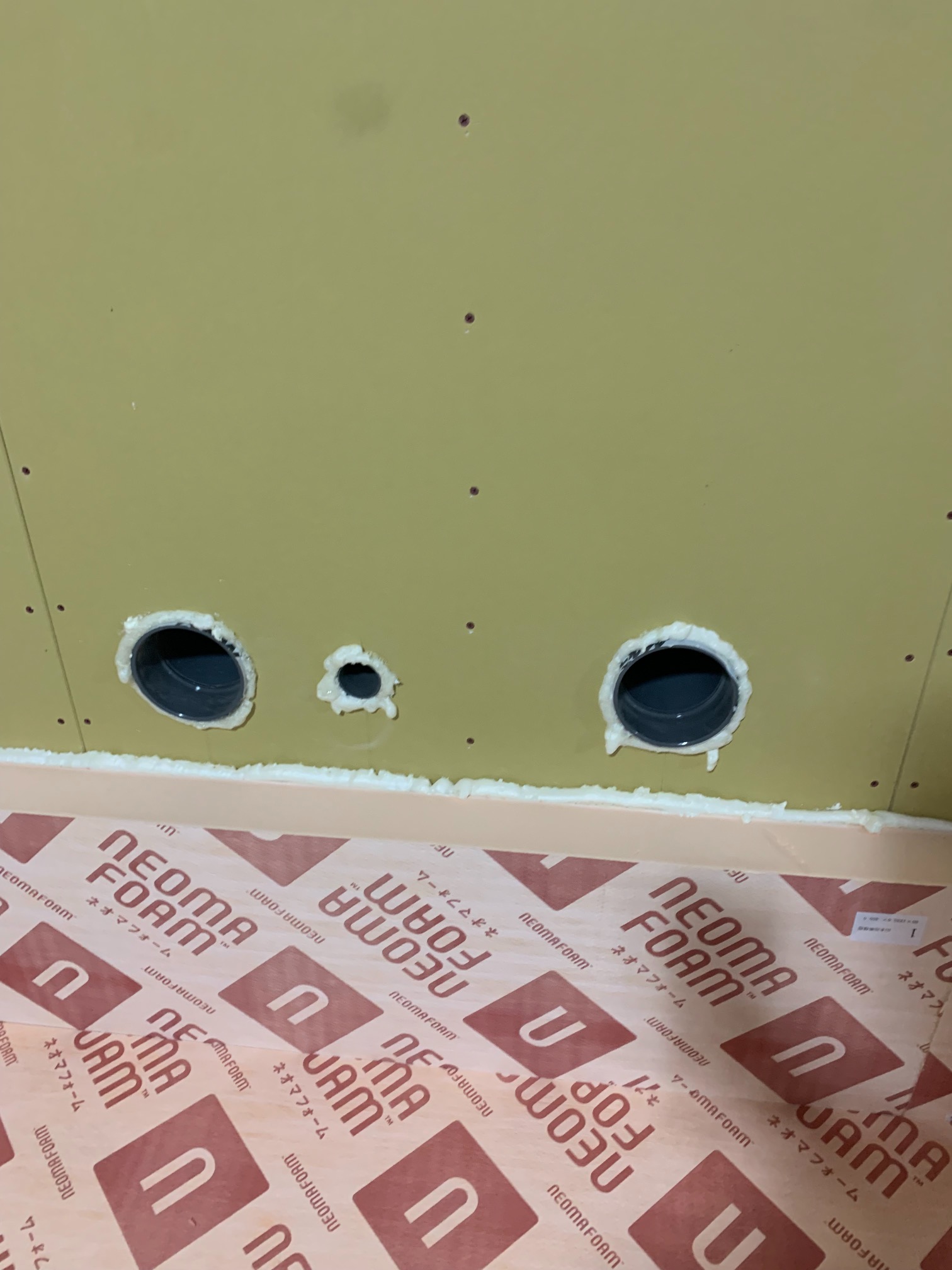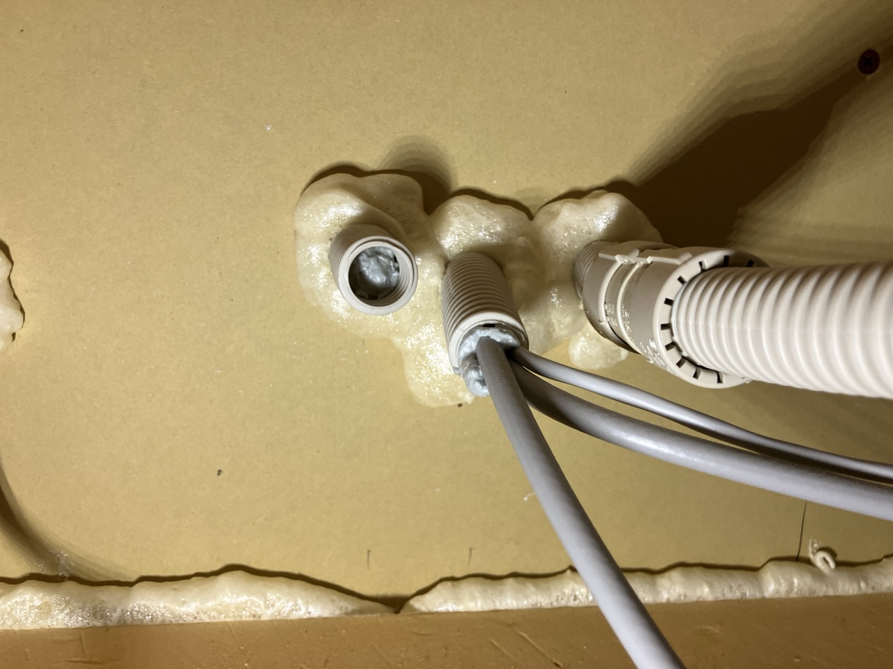 本日は昨年の施工時に外壁貫通スリーブへの配管が挿入してある部分に一部気密充填忘れが発見されたため、ウレタン吹付で充填作業を行いました。乾燥機を使用する際に排湿によって屋内が負圧となる際、何となく外部から冷気が入ってくるな、と感じたところから気付かれたとの事です。その他電気配線スリーブなども補強で充填。床下、天井裏を一回り再チェックしました。y様、大変ご迷惑をおかけしました。