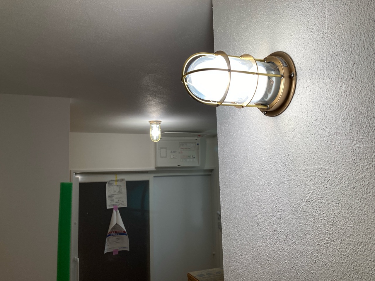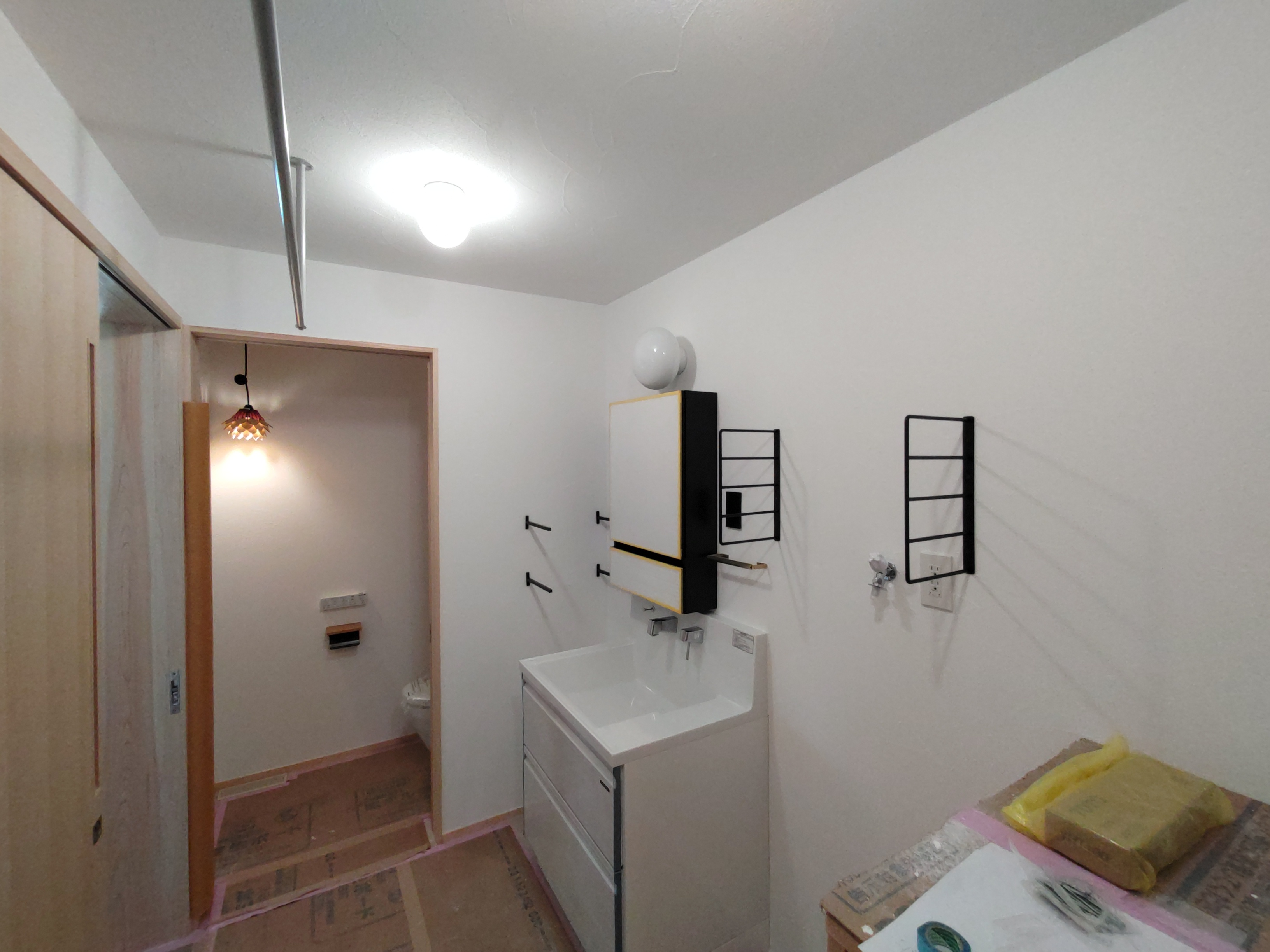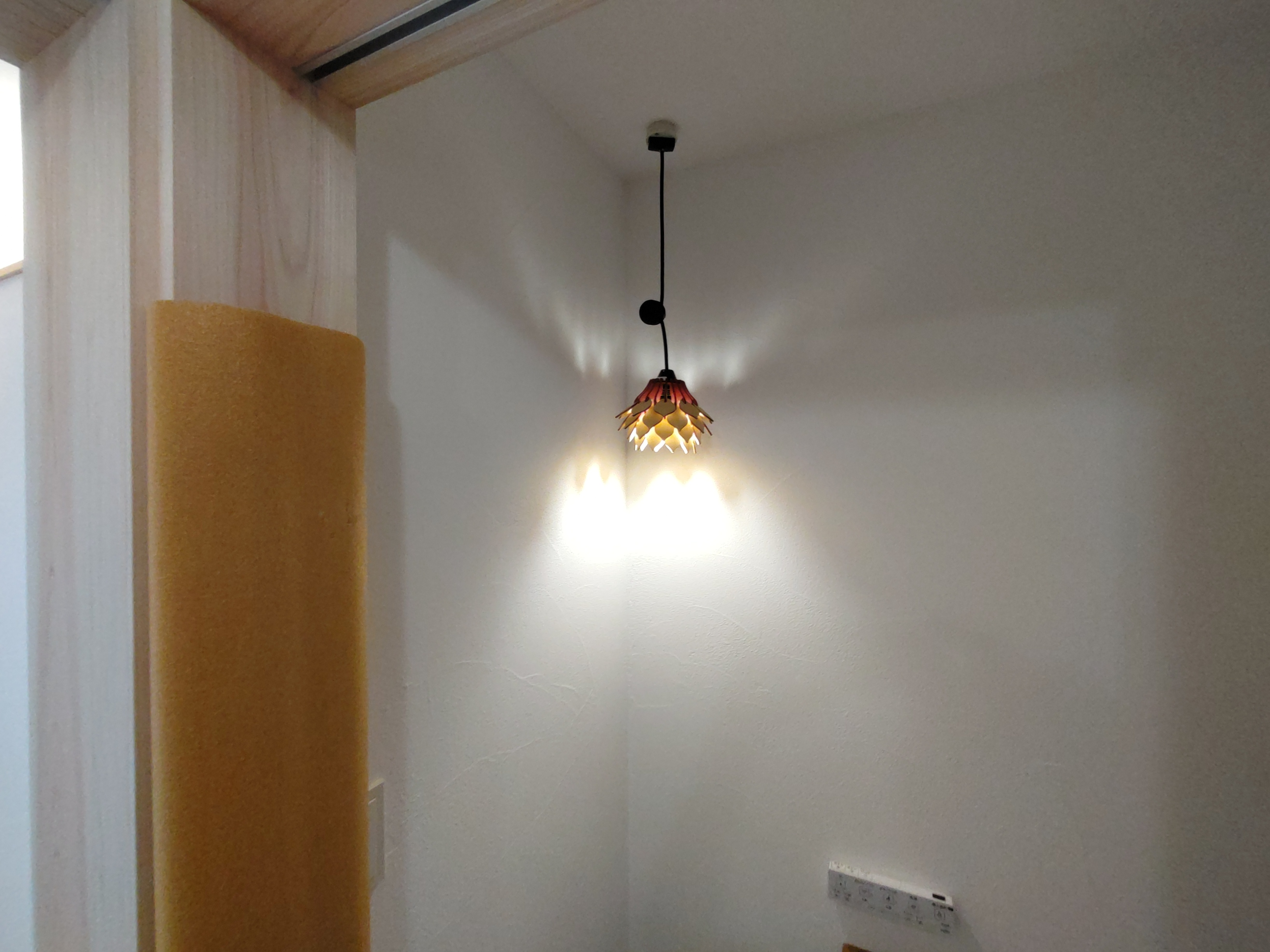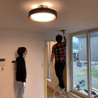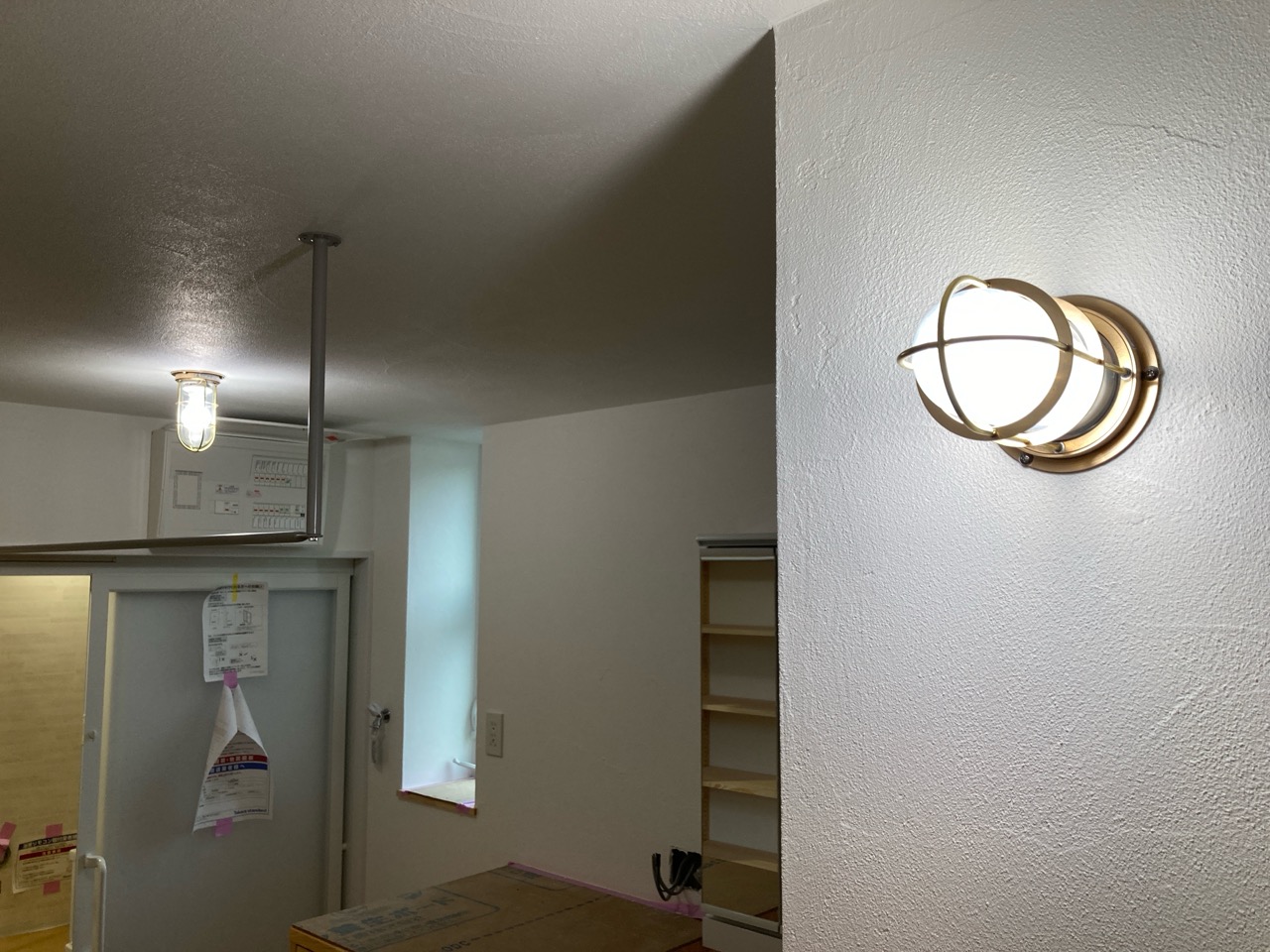 北世帯にもy様が厳選された照明器具やその他必要な部材が取り付けられました。南世帯とは少々趣きが違うものの、やはり普段見慣れない形の器具を見るのは興味深いものがあります。