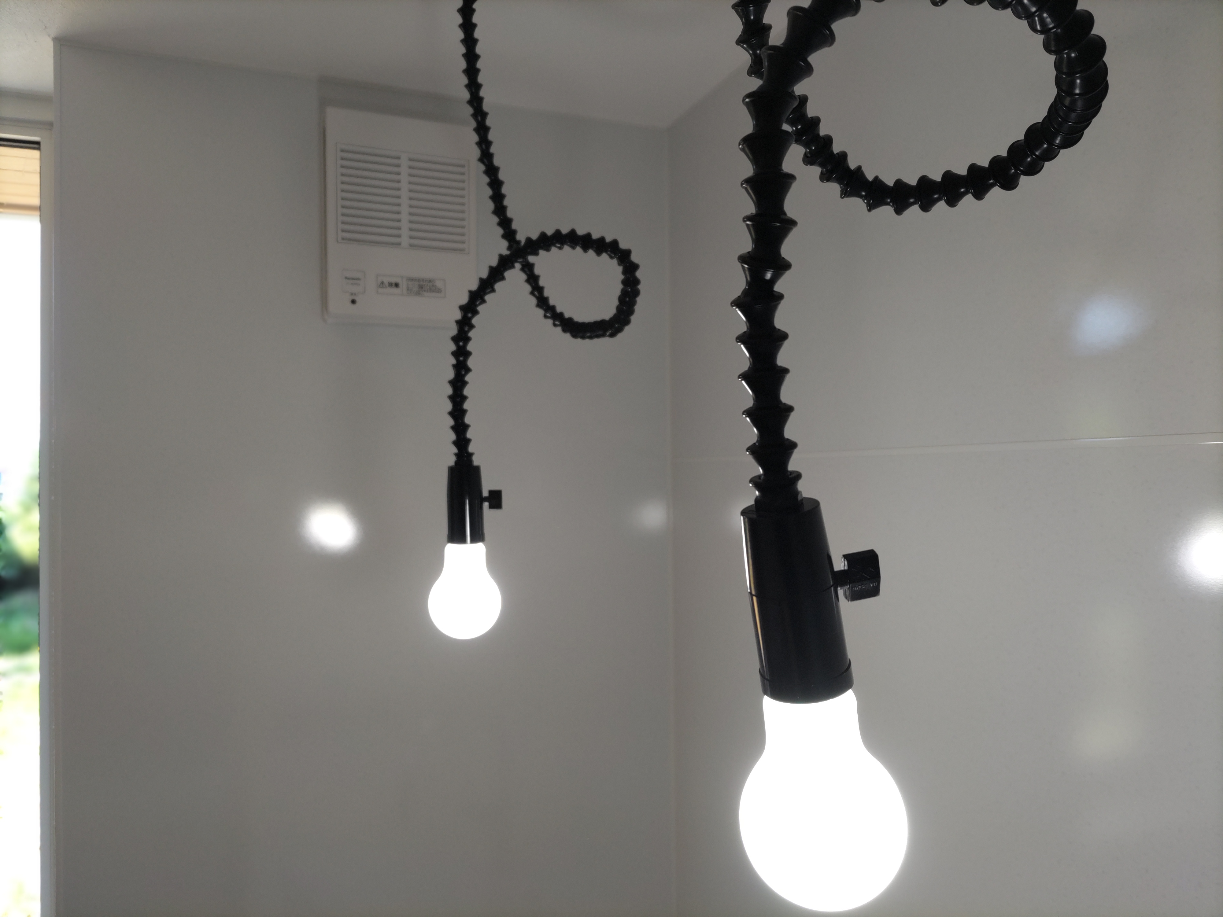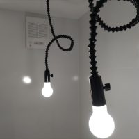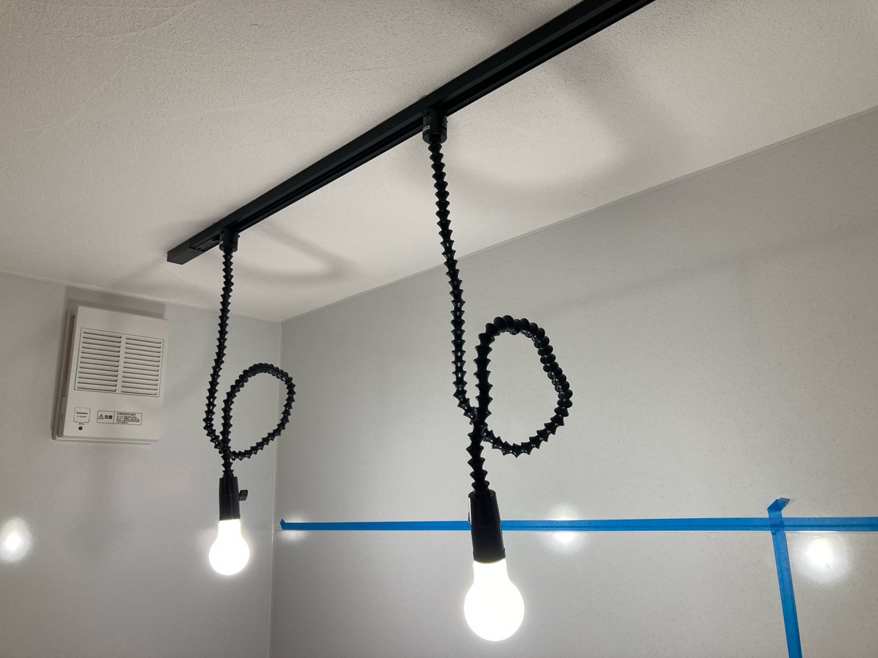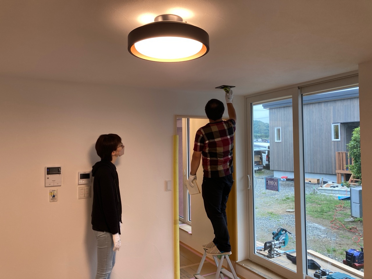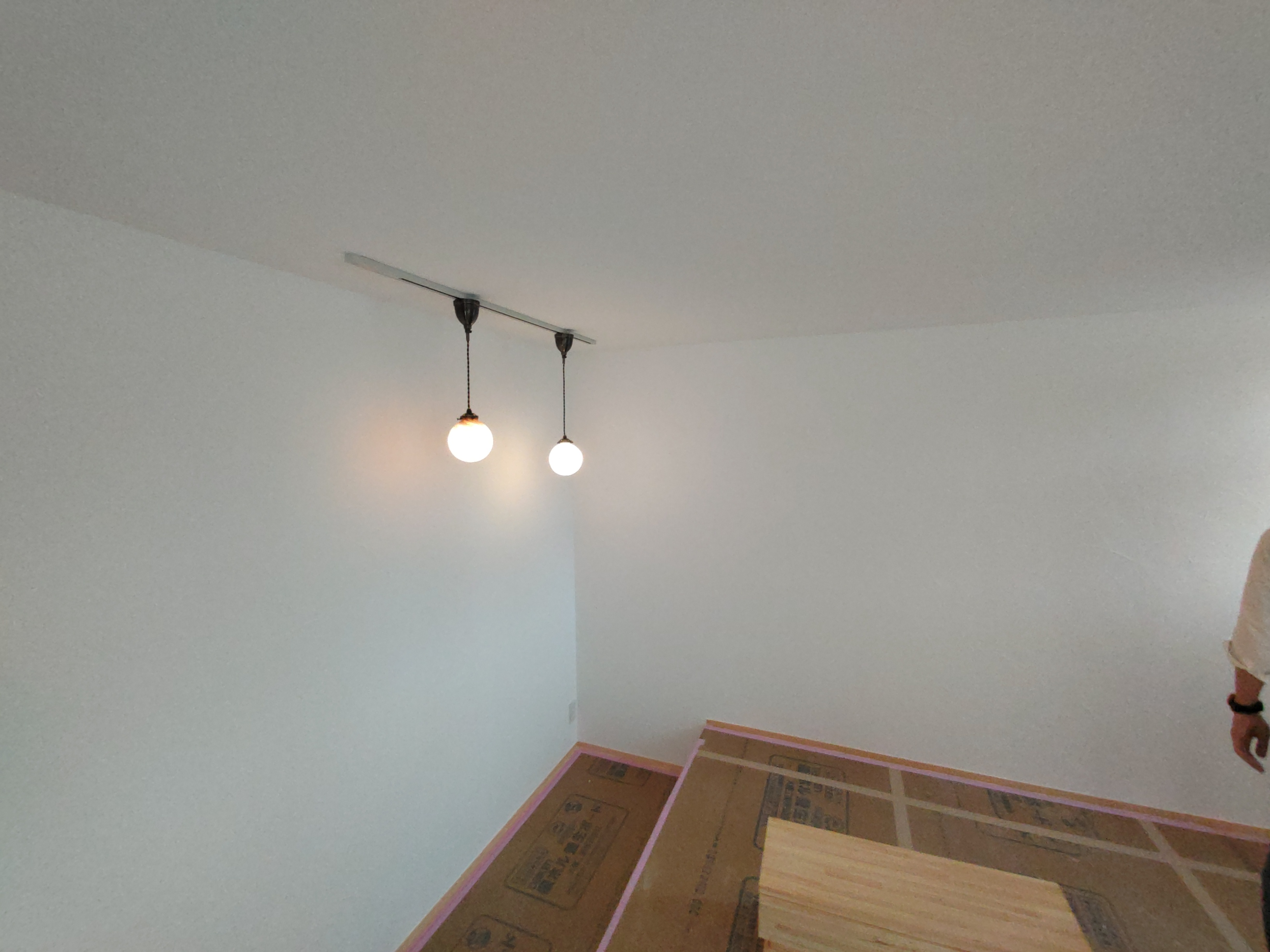 北世帯にもy様が厳選された照明器具やその他必要な部材が取り付けられました。南世帯とは少々趣きが違うものの、やはり普段見慣れない形の器具を見るのは興味深いものがあります。