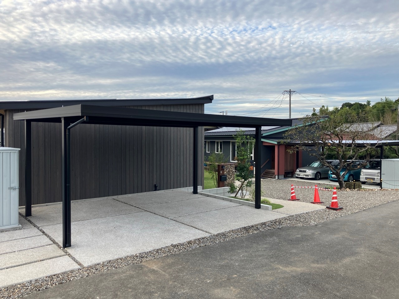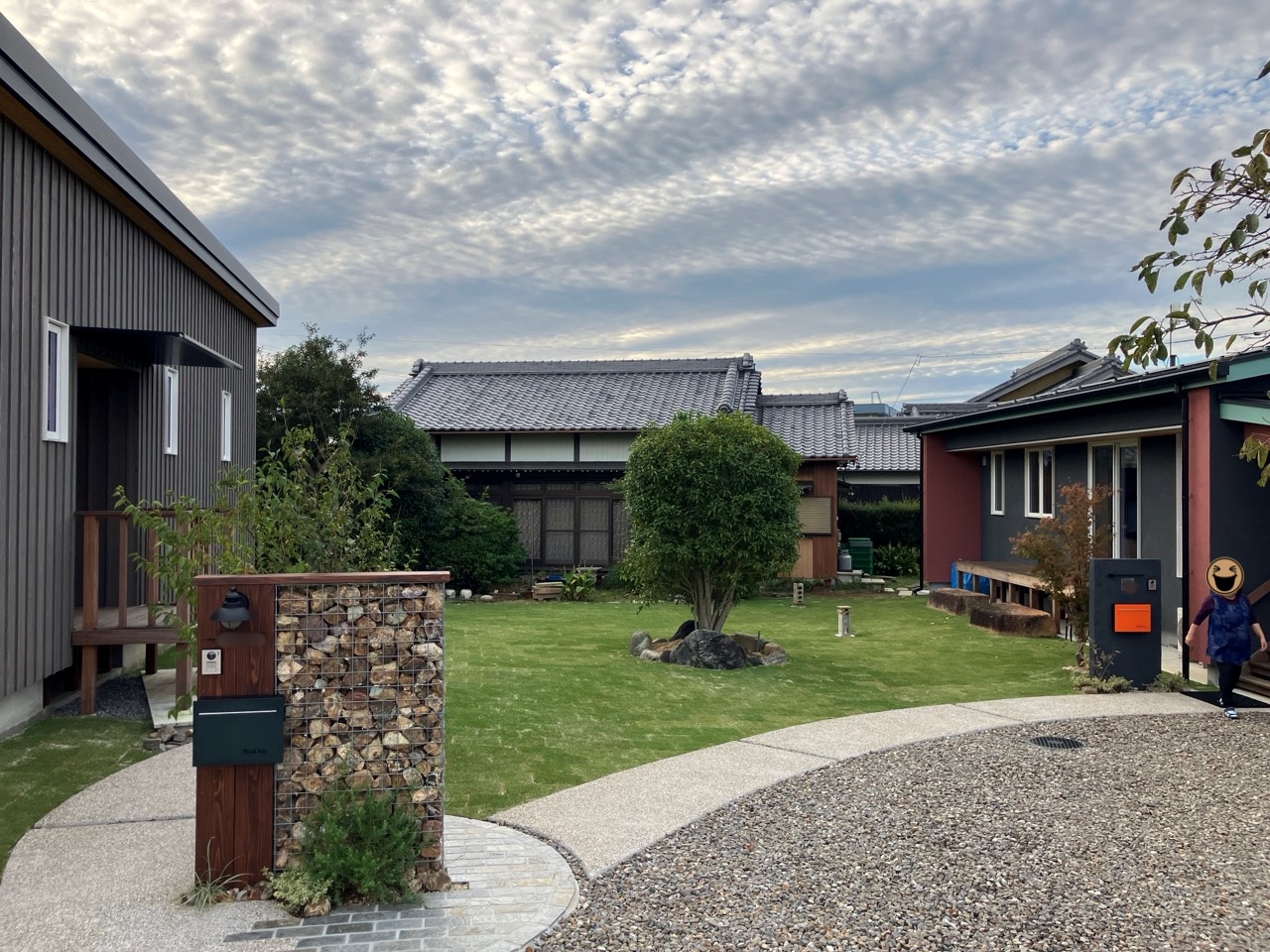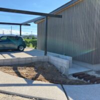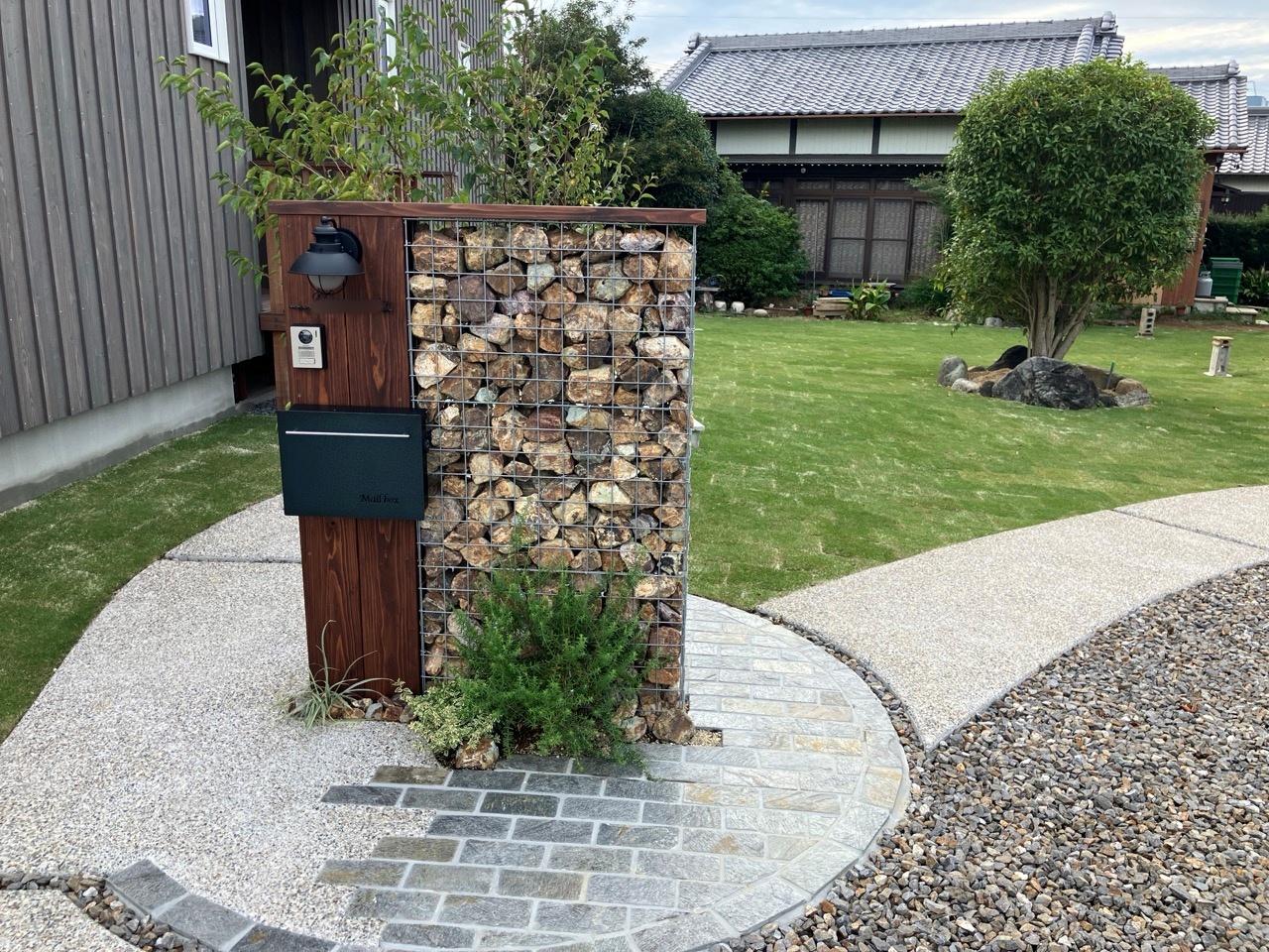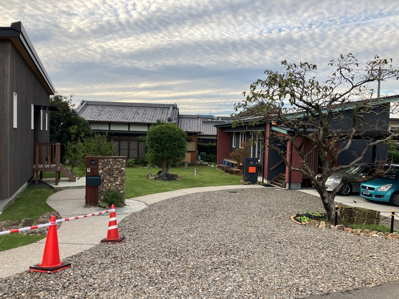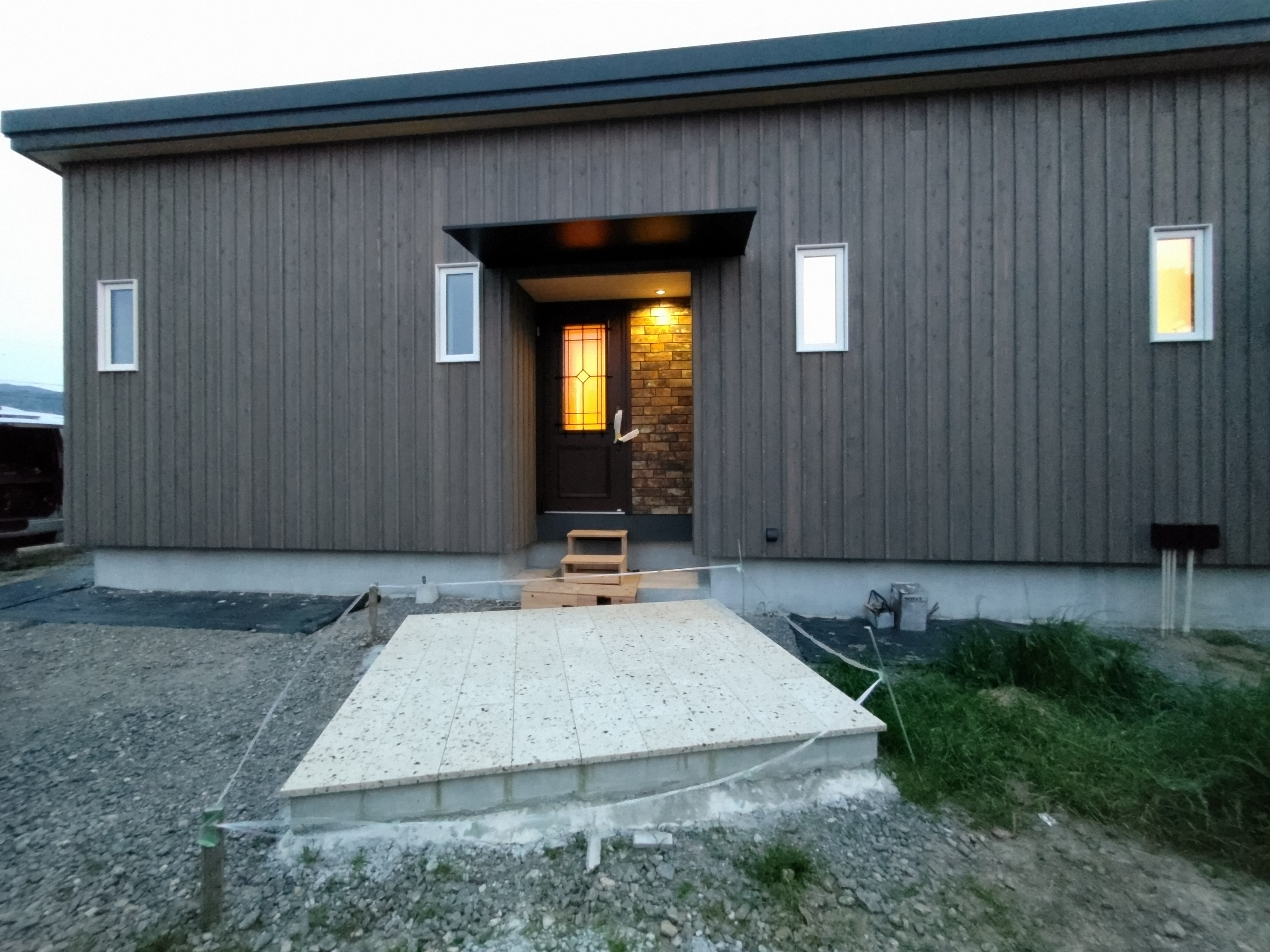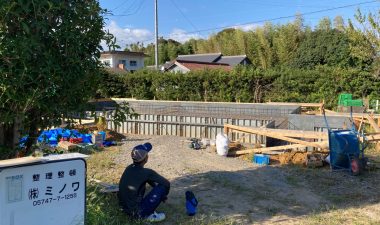 同じく幸田町で建築をご検討のお客様がみえるので、お打ち合せがてら外構工事の進み具合を見にやって来ました。アプローチや門柱があらかた完成していますので後は車路の砕石や植栽工事を残すのみとの事です。次回またお打ち合わせに来た時にどの辺りまで進んでいるか楽しみです。