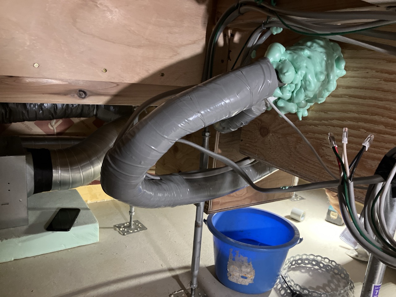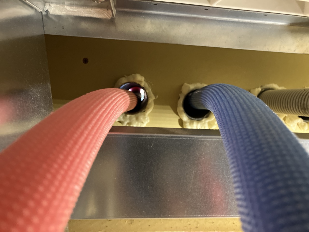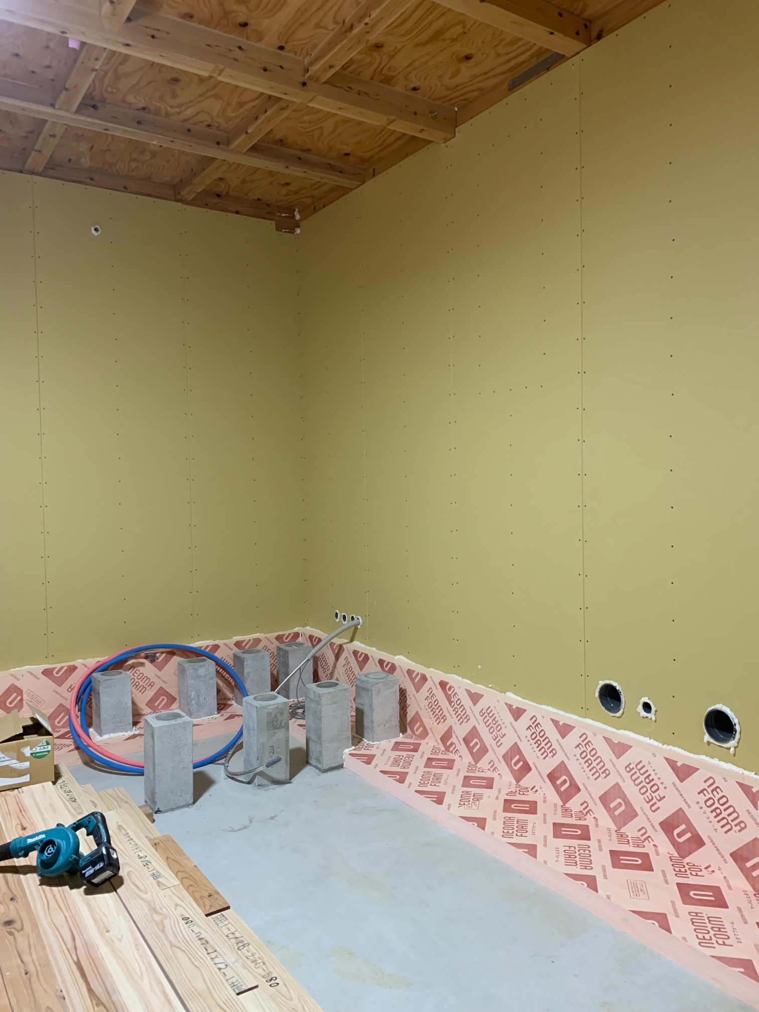 夏の間はエアコン業者さんが多忙&多忙による体調不良でできなかった床下配管の保温工事を行いました。年末も差し迫ろうかという時期となりましたが、業者さんの体調やスケジュールも調整でき、良い時期に行えます。