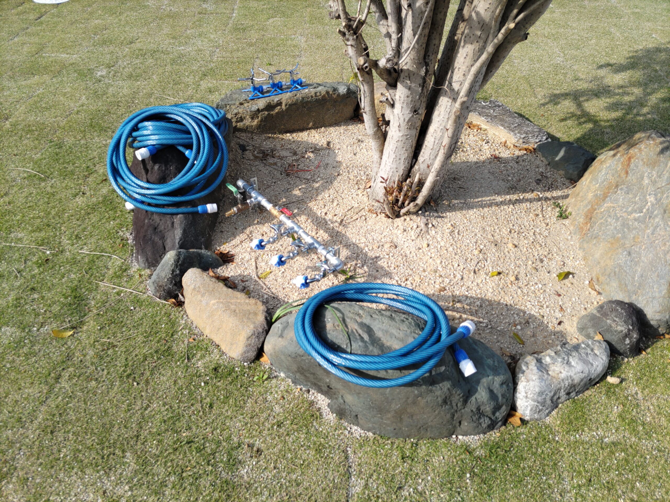 もともと設備関係の仕事をされていたお父様の力作。広大な庭の芝に散水するためのスプリンクラー用水栓。デッキ下にタイマーを仕込み時間になったら開閉できる、というギミックも仕込まれています。さすがマルチタスクなお父様です。
