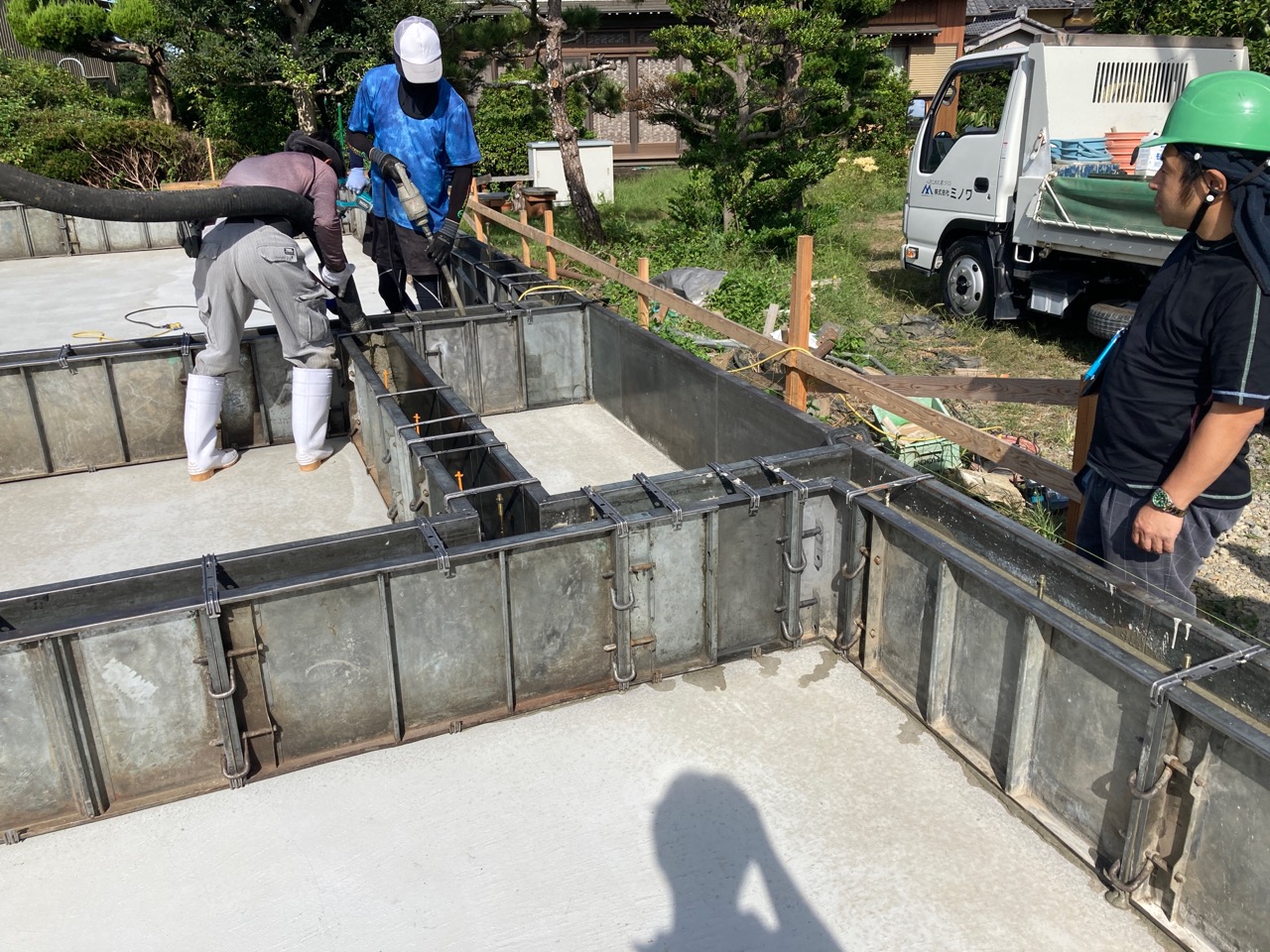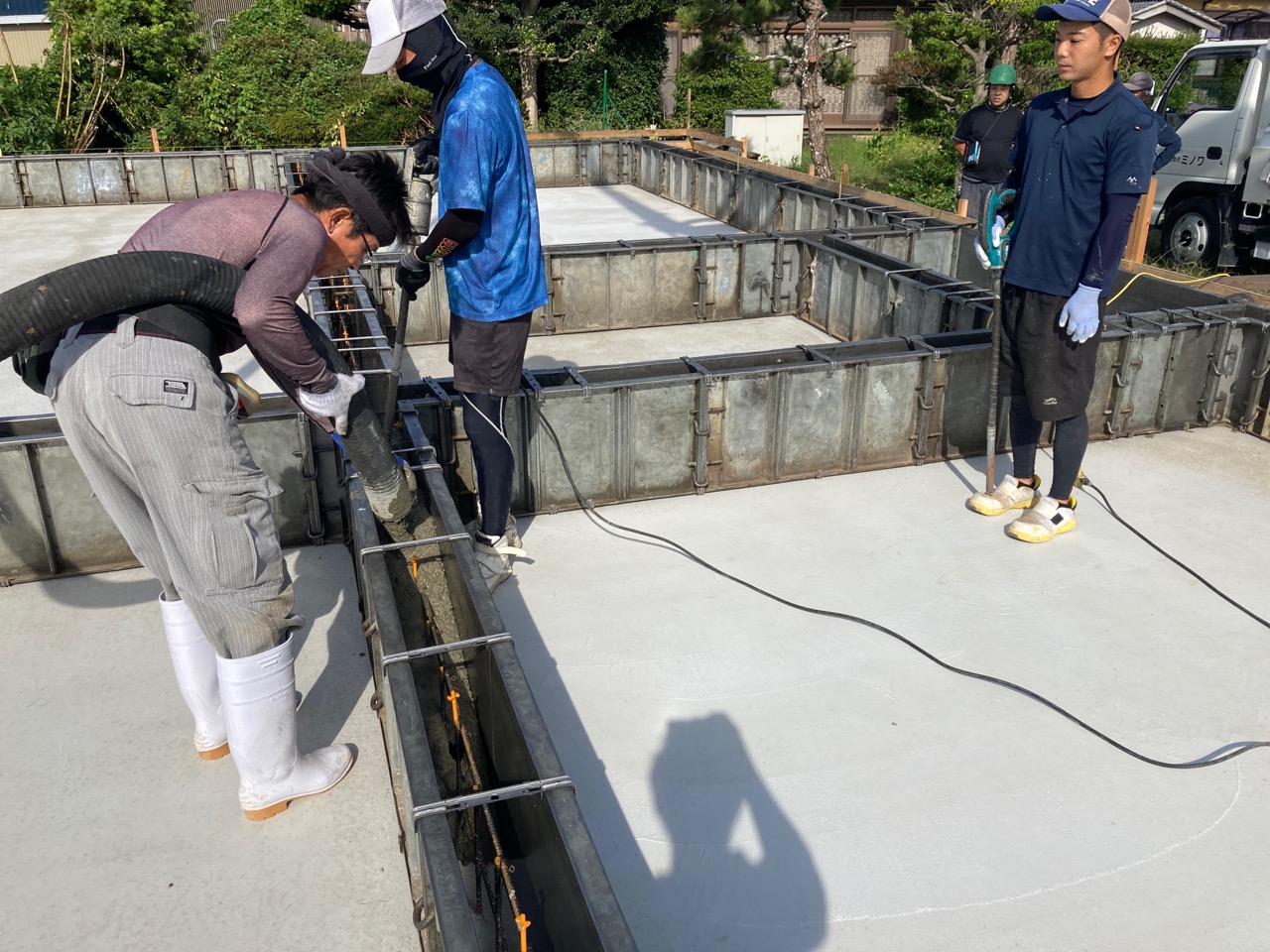 南世帯から北世帯へと順調に打設が進んでいきます。