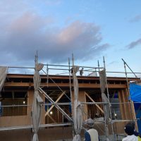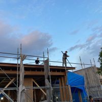 この時期、日が落ちても明るい時間帯に作業を終え、上棟式まで行う事ができました。そう考えるとk長先生の設計はかなりシステマチックにできていると感じます。