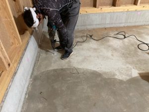 本日は設計のk長先生も早朝から現場へやって来ました。深夜0時に宇都宮市を出発、5時間半ほどで現場へ着いたそうです。早速設計の視点でのアンカーのチェック。遠路はるばるありがとうございます。