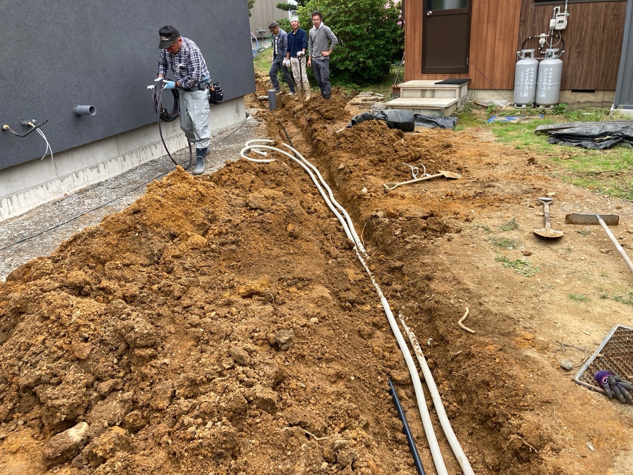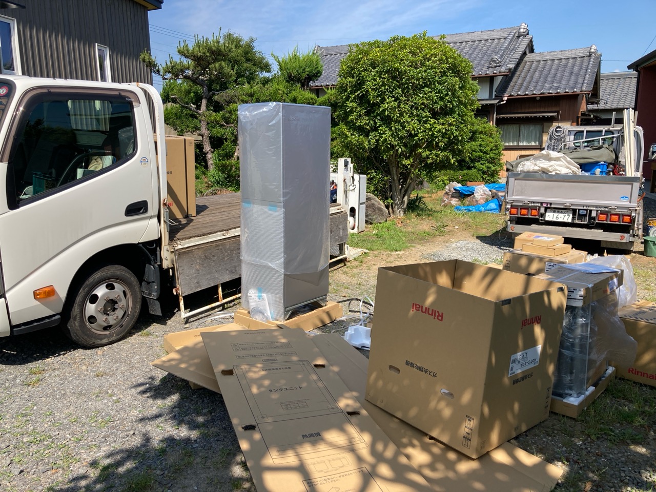 本日は両世帯にガス業者さんが大挙してやってきました。給湯器や乾燥機を設置するため人海戦術で一気に仕上げてしまおうという作戦です。まあ、普通に考えて建物が2棟あるので職人さんの数も倍となるという事です。