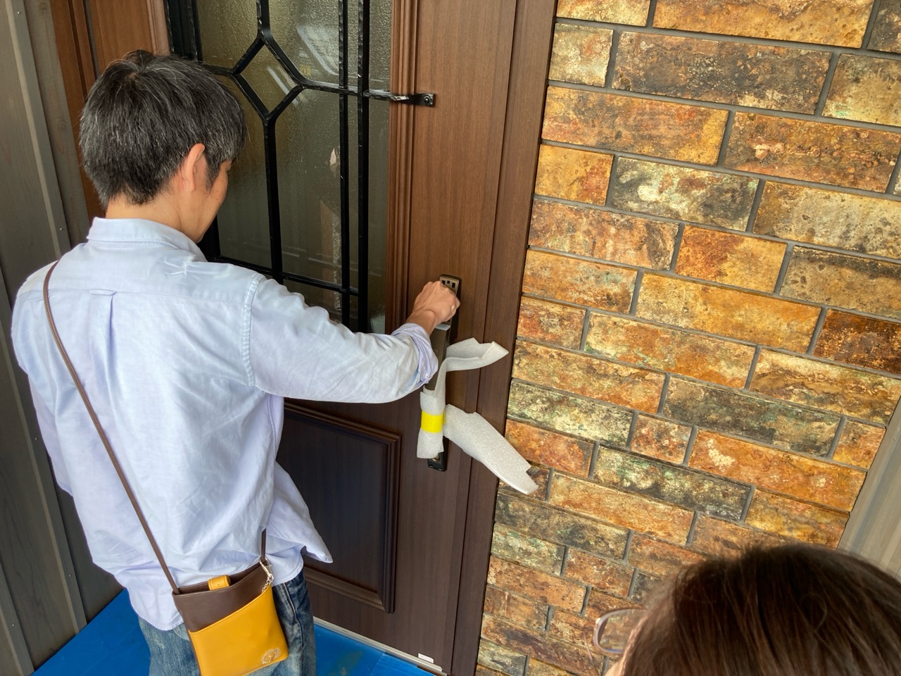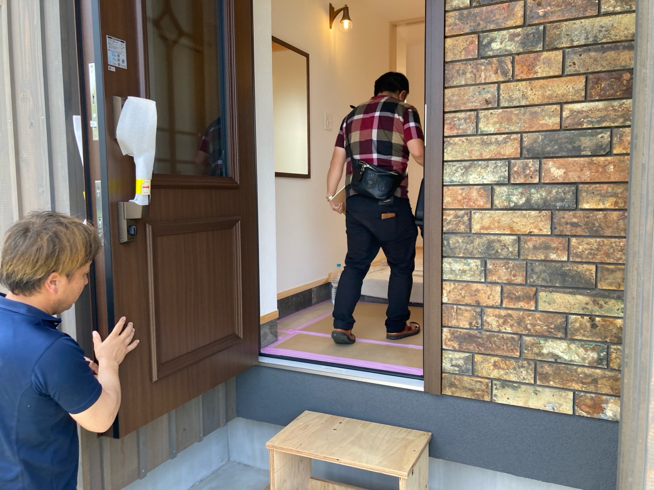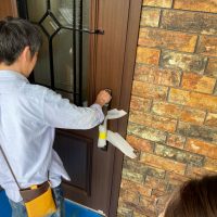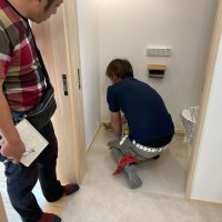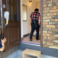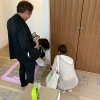 返す刀で続けざまに北世帯のお引き渡しご説明。お父様はほぼ毎日入れ代わり立ち代わりやってくる職人たちと仲良くなって、共に現場を見ておられましたので設備説明も今更、という感じでしたが、これも通過儀式ととらえて入念にご説明。最後にはこちらも玄関キーを入刀して無事にお引き渡ししました。