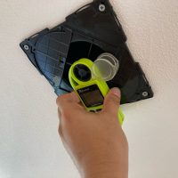天井と床のガラリは住宅内に計12か所あります。すべての場所を循環ファンの風量の組み合わせ(強・強、強・弱、弱・弱)ごとに測定していきます。