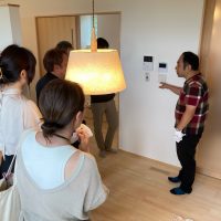 南世帯の屋内を西へ東へと見て回り、設備の確認、操作方法、チャンバーボックスから出る風量の実測と充実した内容。中にはk長先生と同じ風力計を持参するツワモノな参加者の方もおられました。
