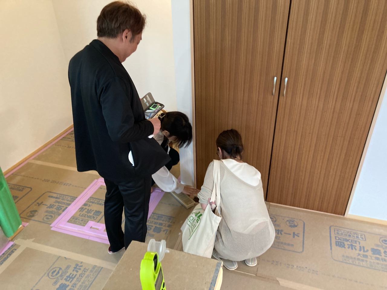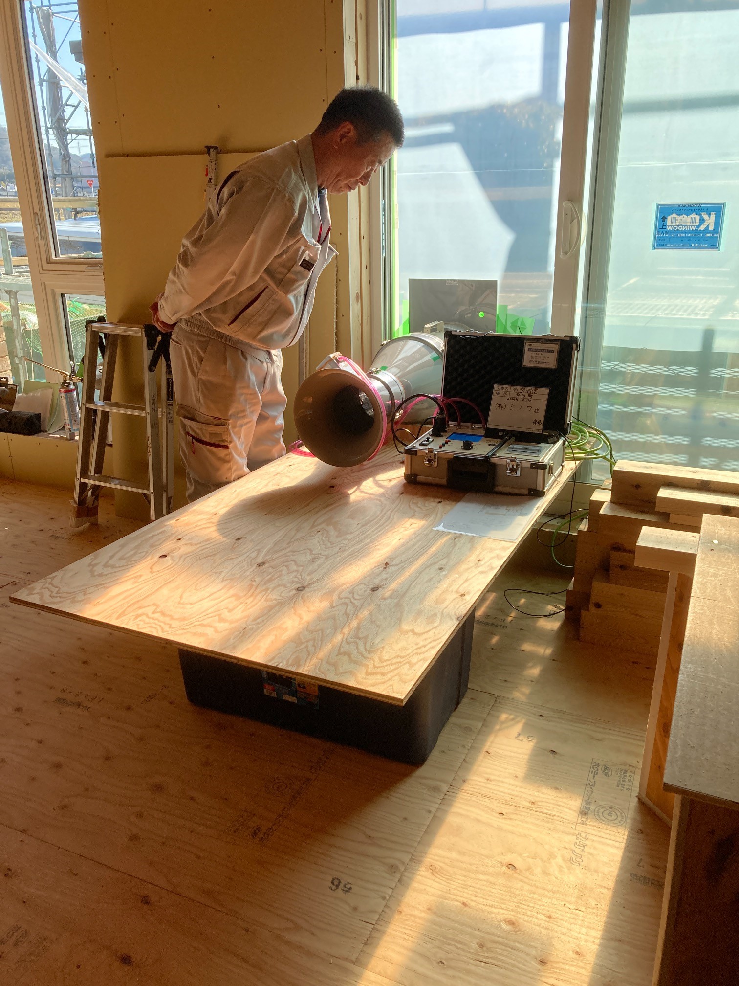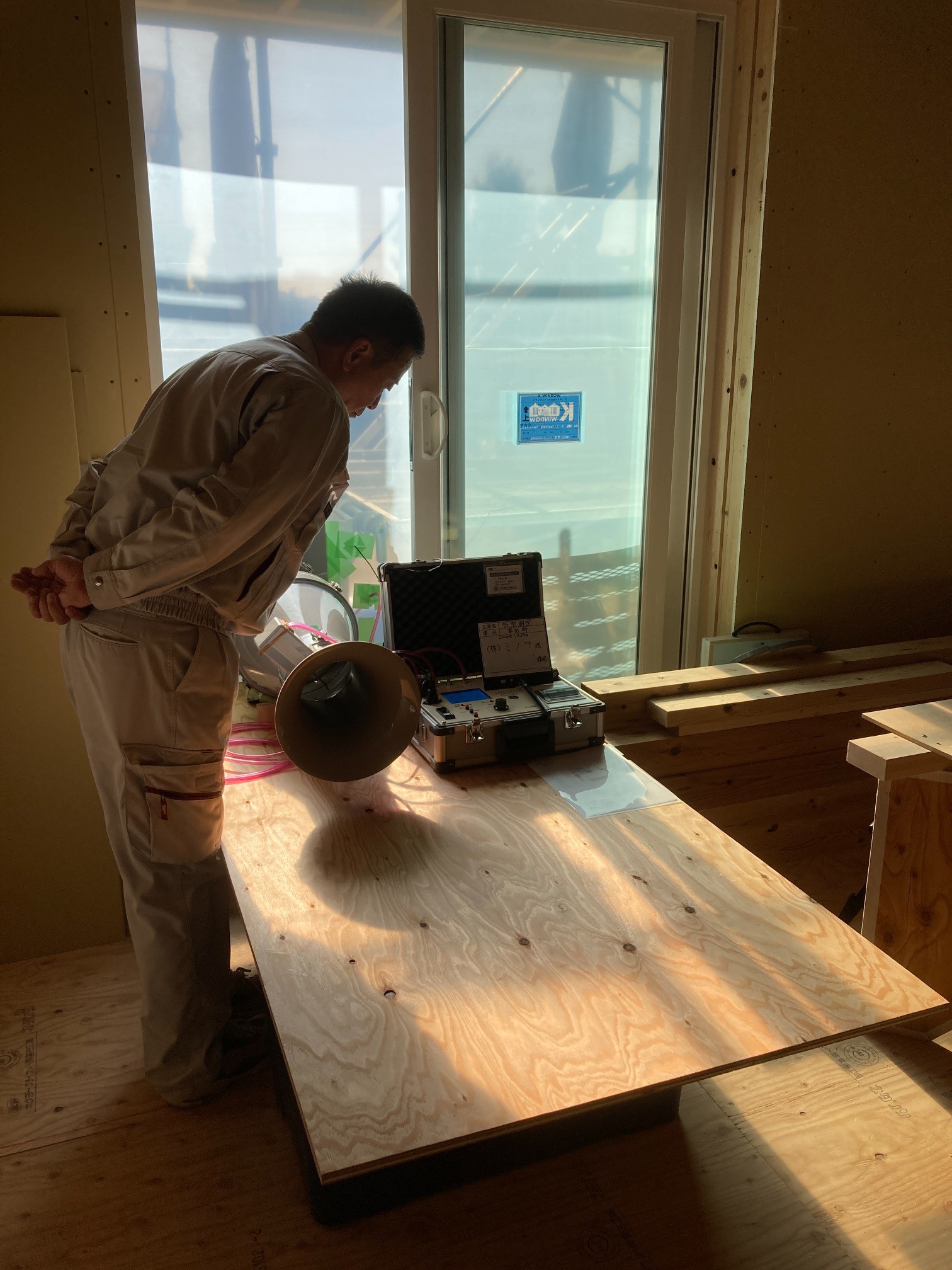k長先生も宇都宮から来られ、各換気システムの最終チェック。ミノワ会長藤井も現場で待ち合わせて参加、KAMI式空調システムを存分に体感していきます。