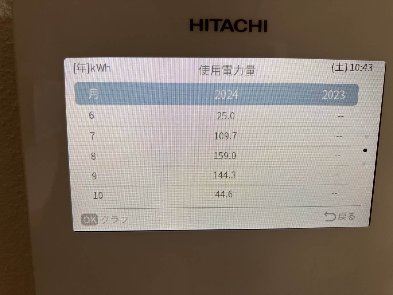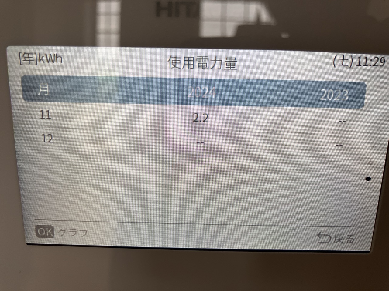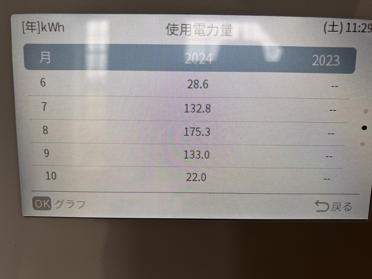 お引渡し以降の月別消費電力も確認、省エネで過ごされています。