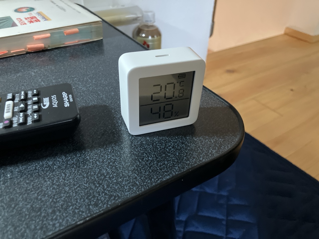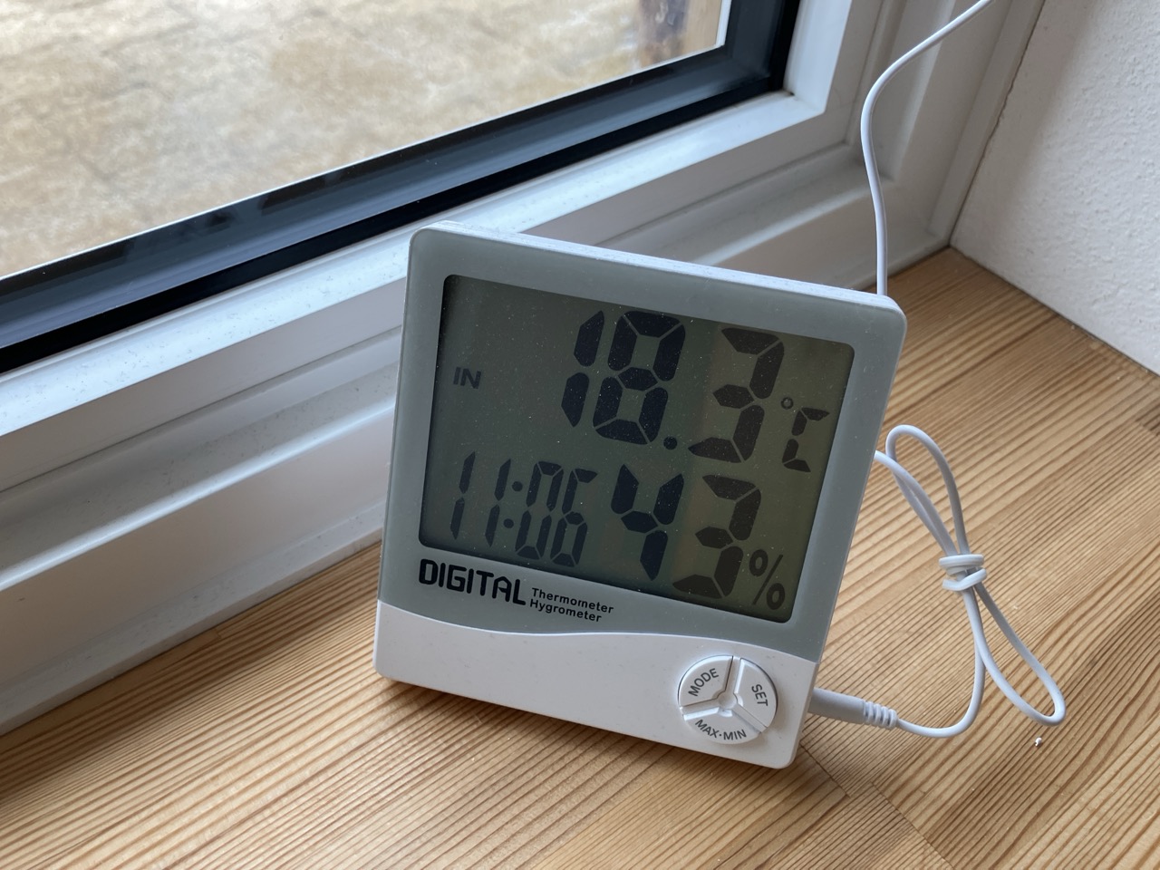 という事でセンサーの付近で敢えて暖房を焚く事で除湿機能を働かせるという実験を行ったところ、確かに湿度が数%下がっていきました。