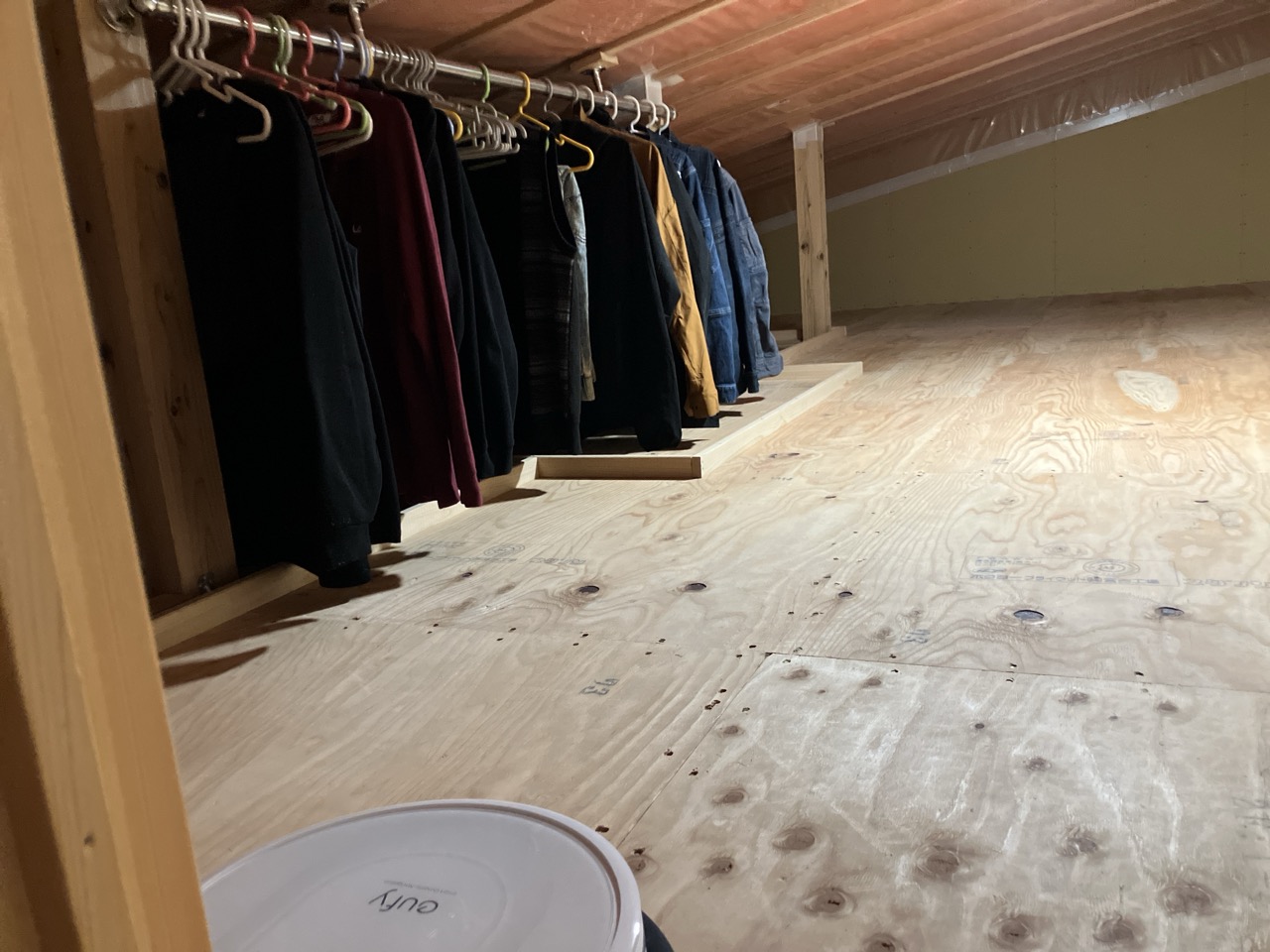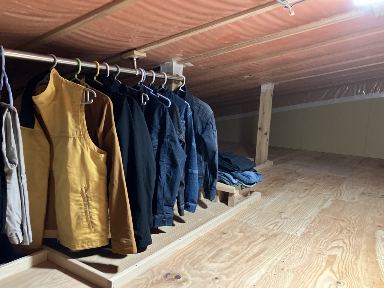 北世帯は小屋裏空間を実用的に使用していることと、小屋裏も一つの換気経路であるため、小屋裏専用のロボット掃除機を置き、埃が入らないようにとの事に余念がありません。