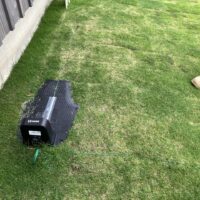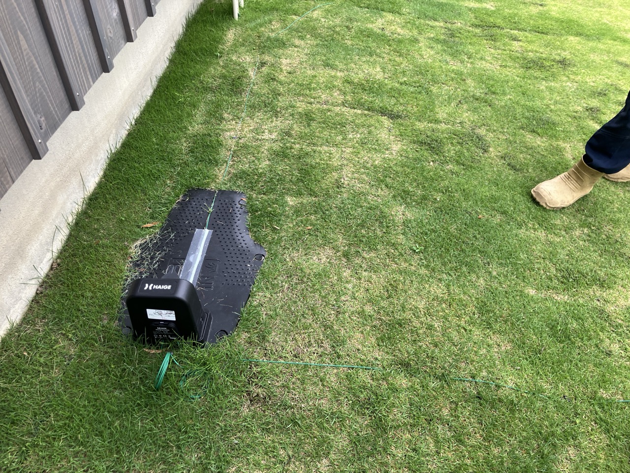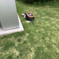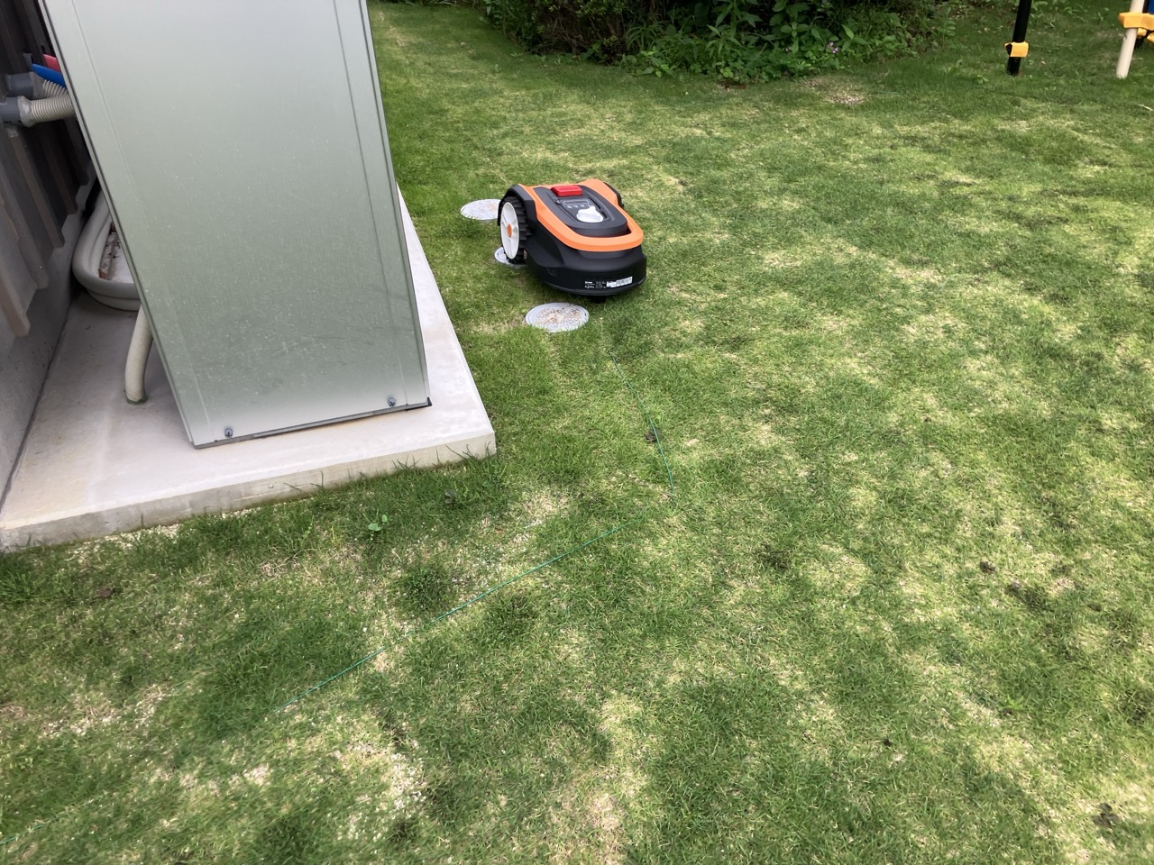 広大な庭の芝生(お父様の計算では65坪ほどあるそうです)の芝刈りは人力では大変という事でy様が購入された自動芝刈り機。芝刈り範囲を緑色のラインで囲っておくと毎日その範囲内を買ってくれるそうです。