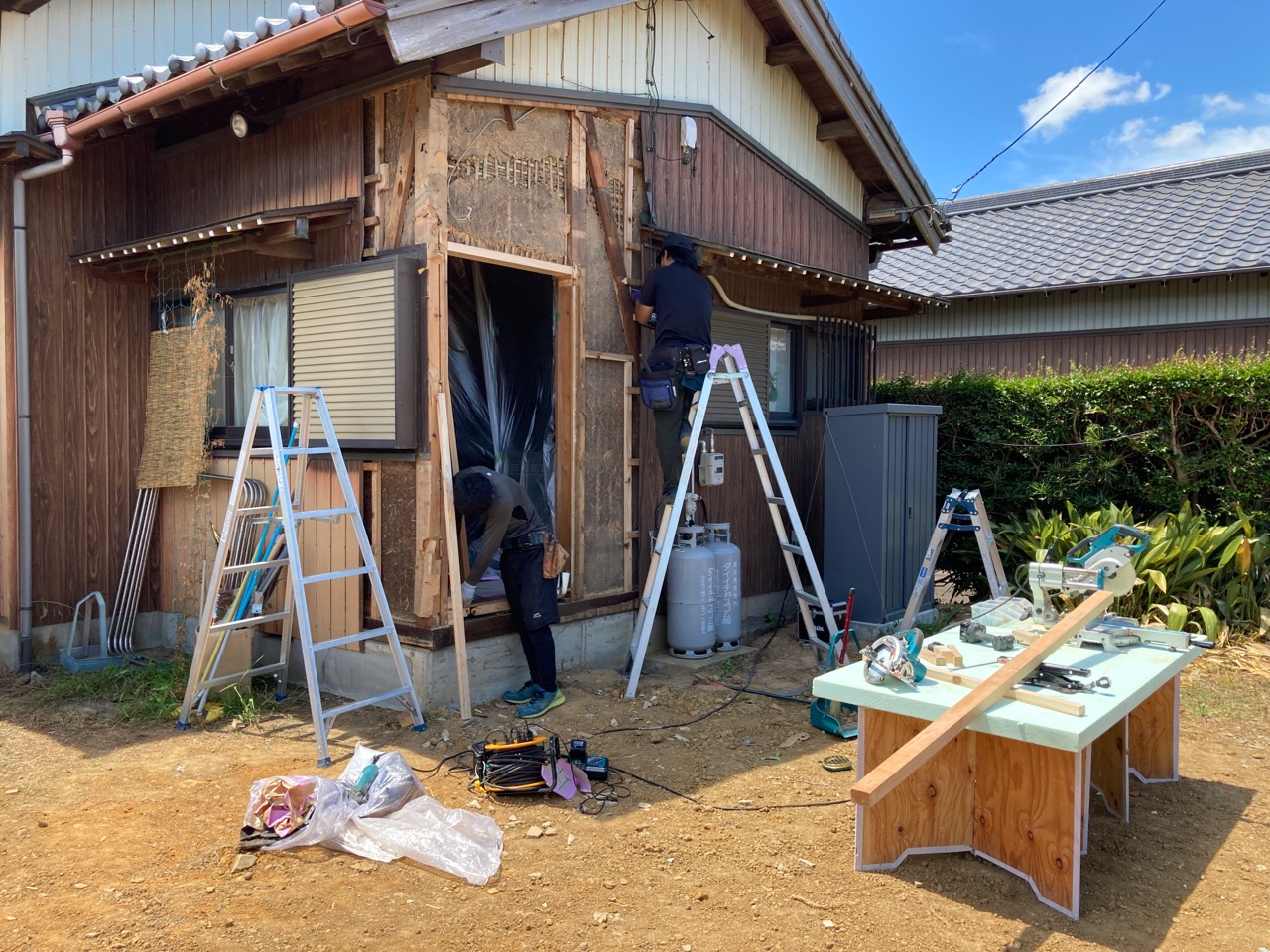 k長先生の手法は先週の北世帯で経験済み、南世帯の大工集団も先週と同じメンバーのため、だいぶ手馴れてきたと見え、作業は非常にスムーズです。この時間帯、逆に早く終わりすぎてしまうのではないかと無用な心配をしてしまいました。