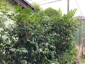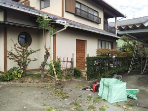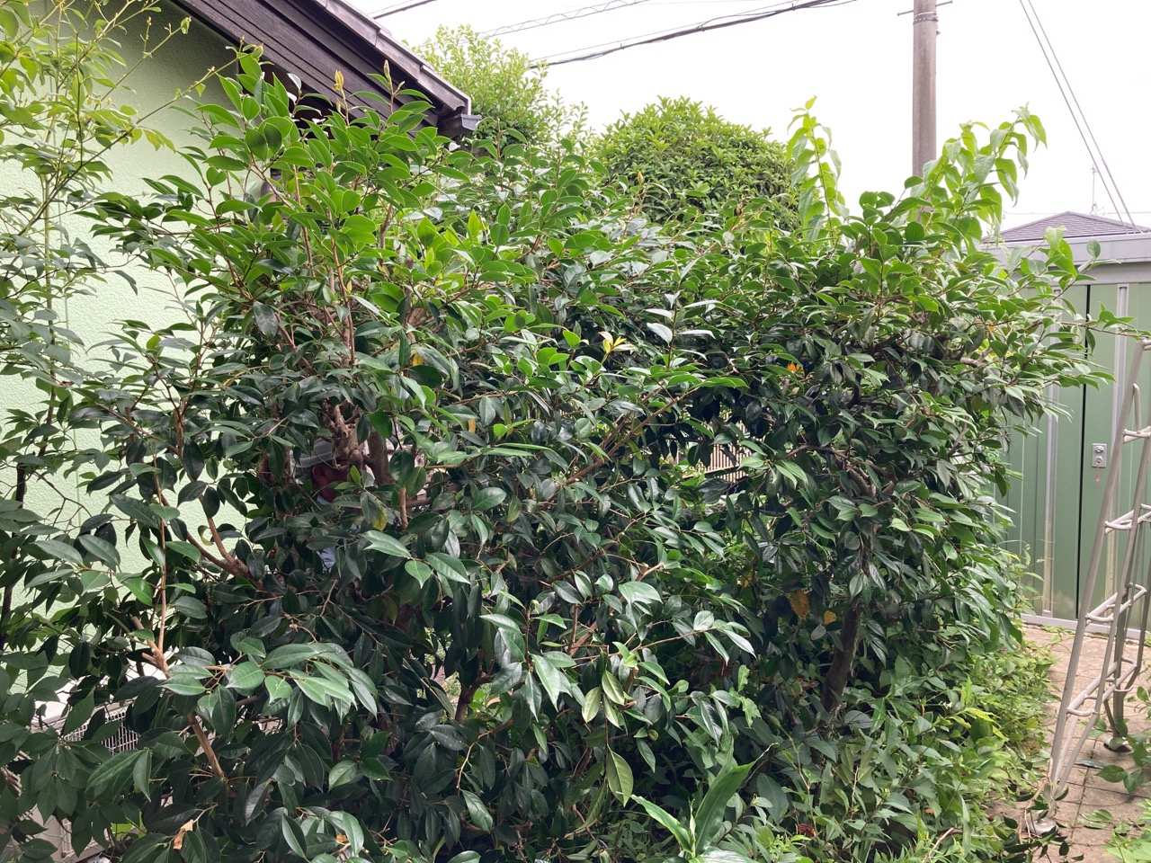 昨年もご依頼いただき刈り込んだ庭木がまた伸びてきましたので本年も剪定作業に入りました。緑豊かなお庭のある住宅というのは非常にウラヤマシイ限りですが、年に一度は手入れをしないといけないという面での苦労も見られます。