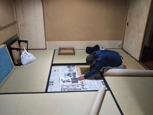 ミノワOBのお客様の中でも古参のm様邸、間取りの中にお茶室をお持ちで、お弟子さんがたくさんみえる先生でもあります。当時の内装がだいぶ傷んできているので左官業者とともに補修にうかがいました。
