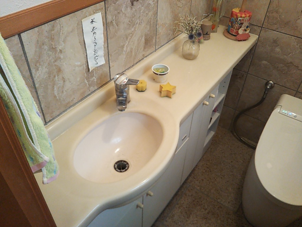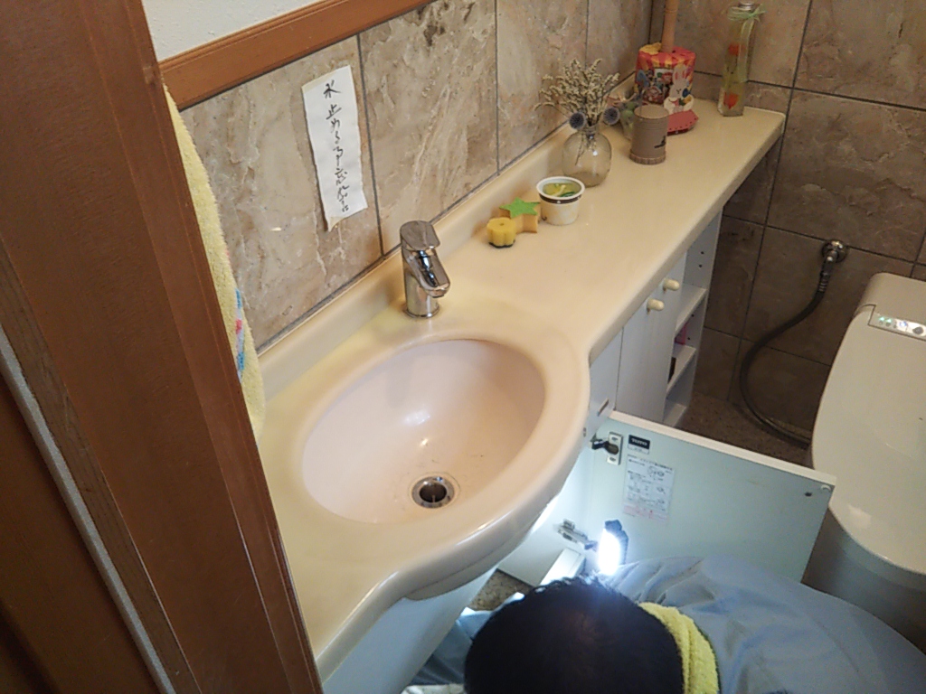 手洗器配管の交換にうかがいました。なにせ20数年前に竣工取付をした設備ですのでメーカーにも部品が無く、今ある部品を組み合わせて配管工事を行うという設備業者さんの腕頼みの工事となりました。