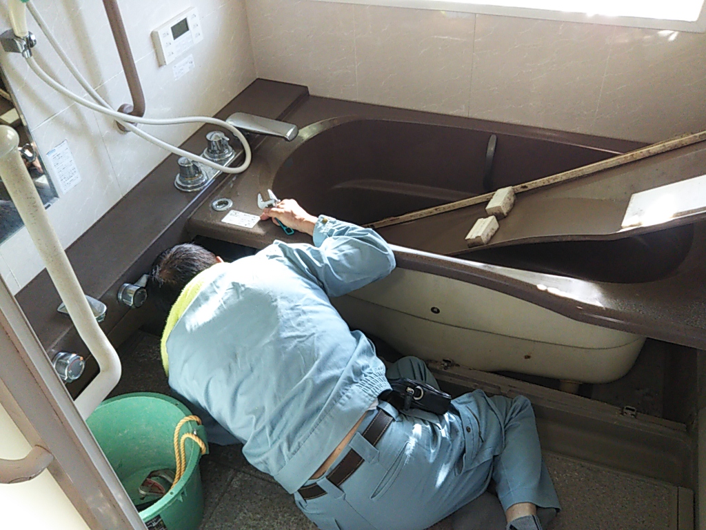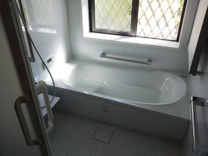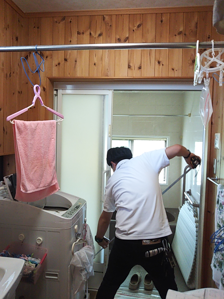 続いてユニットバスの交換工事のご用命も承り、メーカーに採寸を依頼しています。当時は『最新』の設備でも20年以上経ってくるとやっぱり傷みが出てきて新しいものにリフォームしたくなります。機能や清掃性なども現在では格段に向上しています。