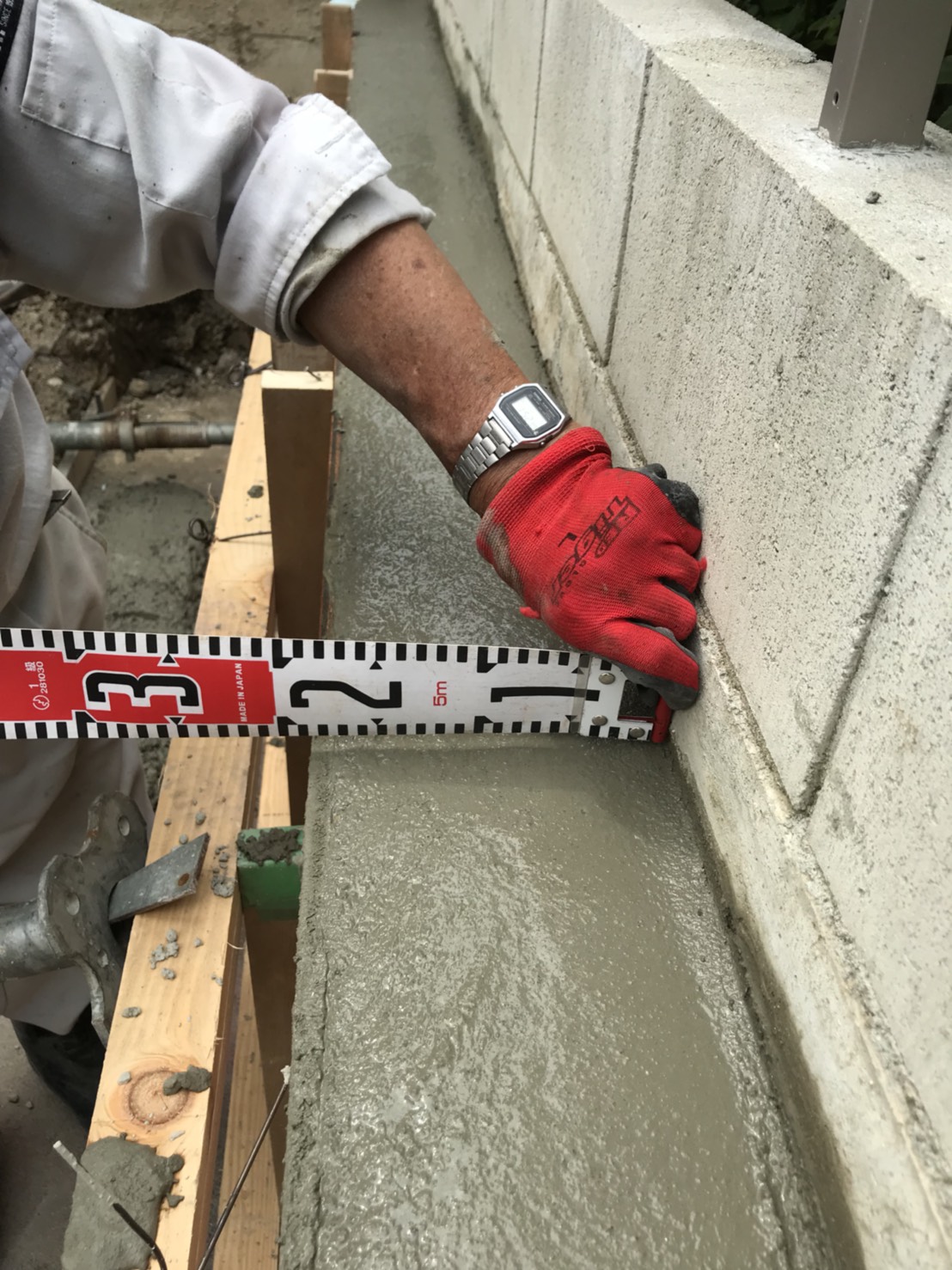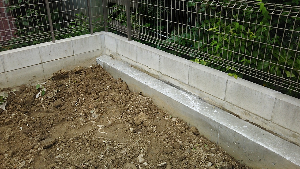 型枠を組み、高さ1mまでコンクリートを打設しました。これが乾けばこの擁壁もしっかりするでしょう。