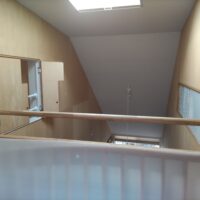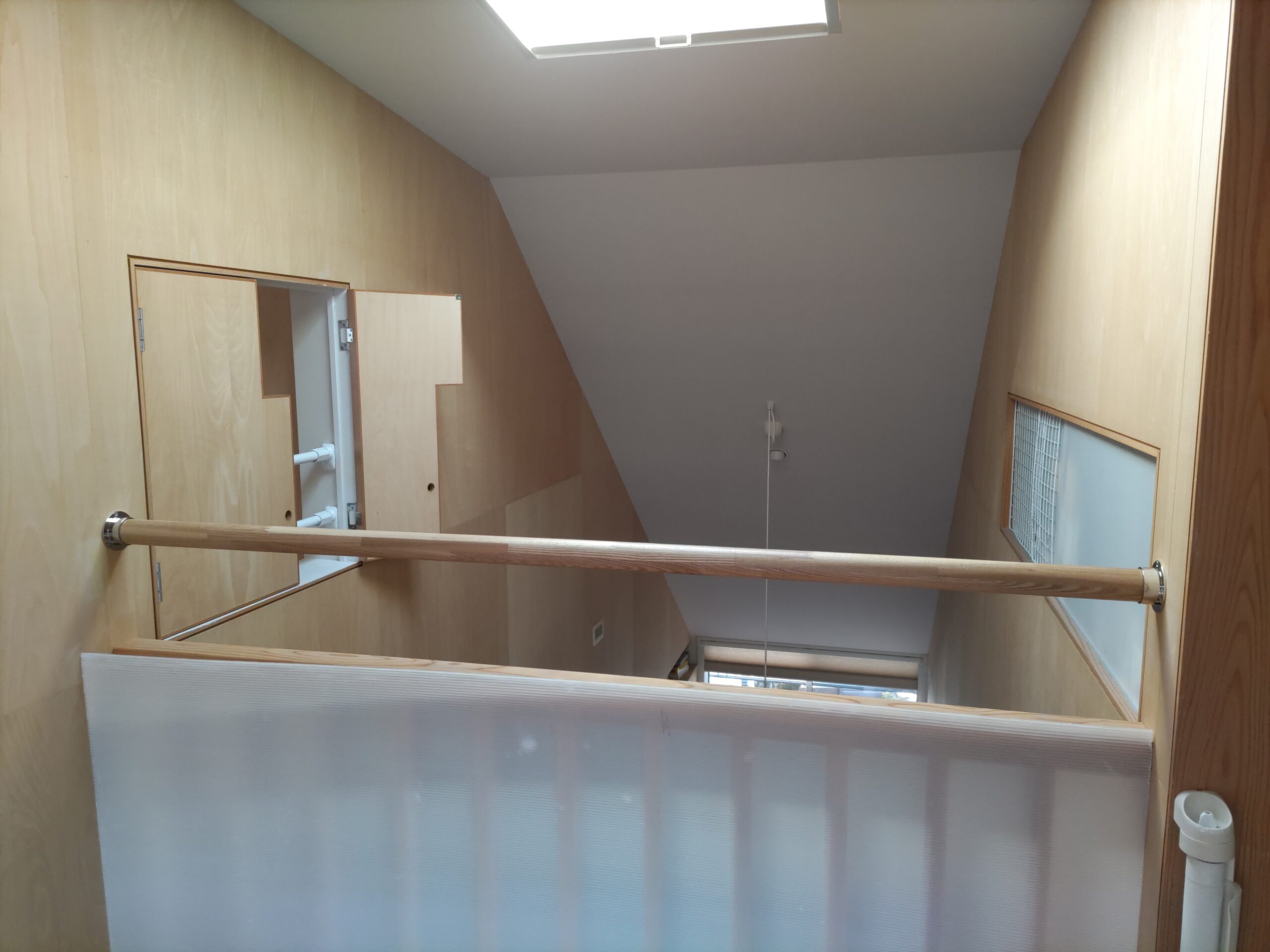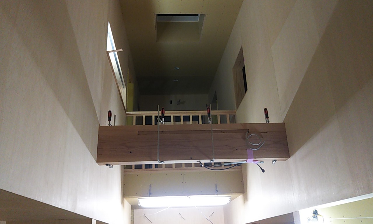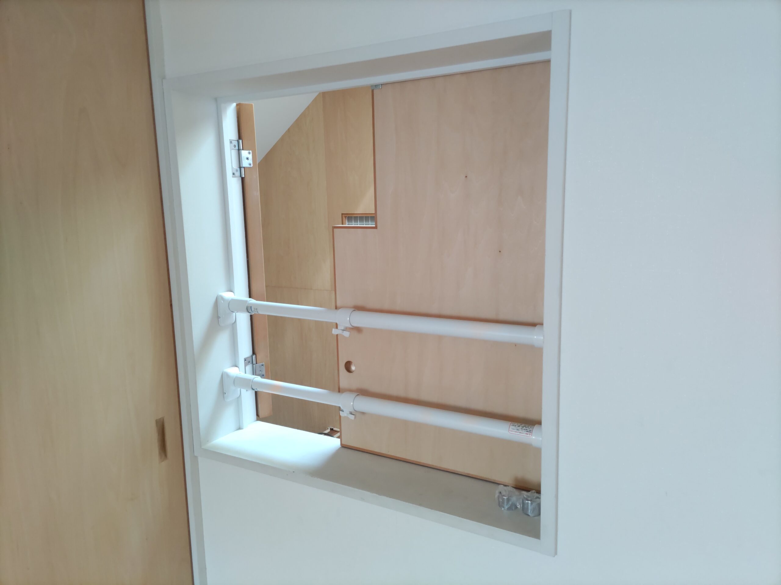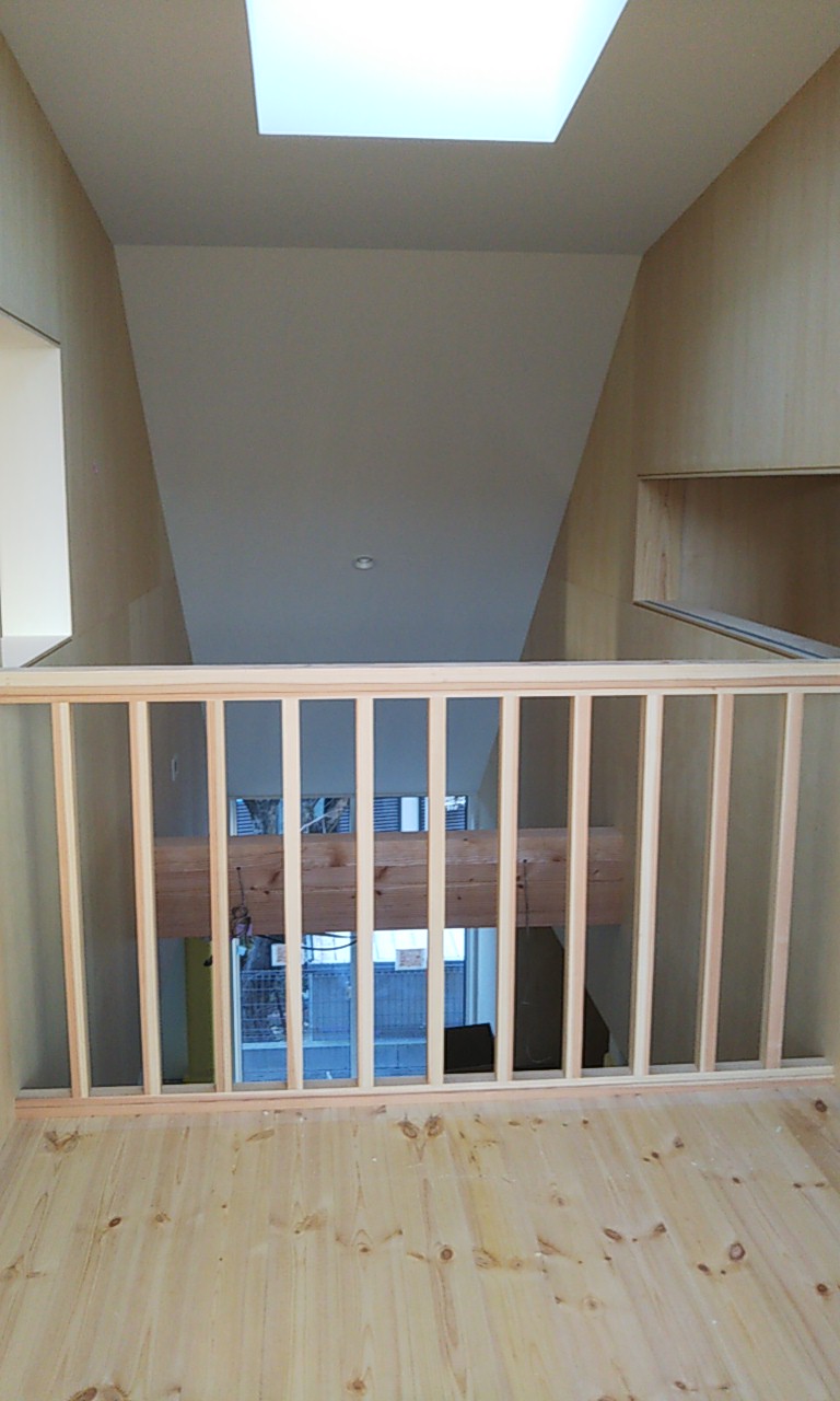 子供室から吹抜に面して下階のリビングを見渡せる室内窓に手摺を付けにやって来ました。まだまだ次女のutaちゃんが小さいため身を乗り出して落ちないようにするための手摺です。