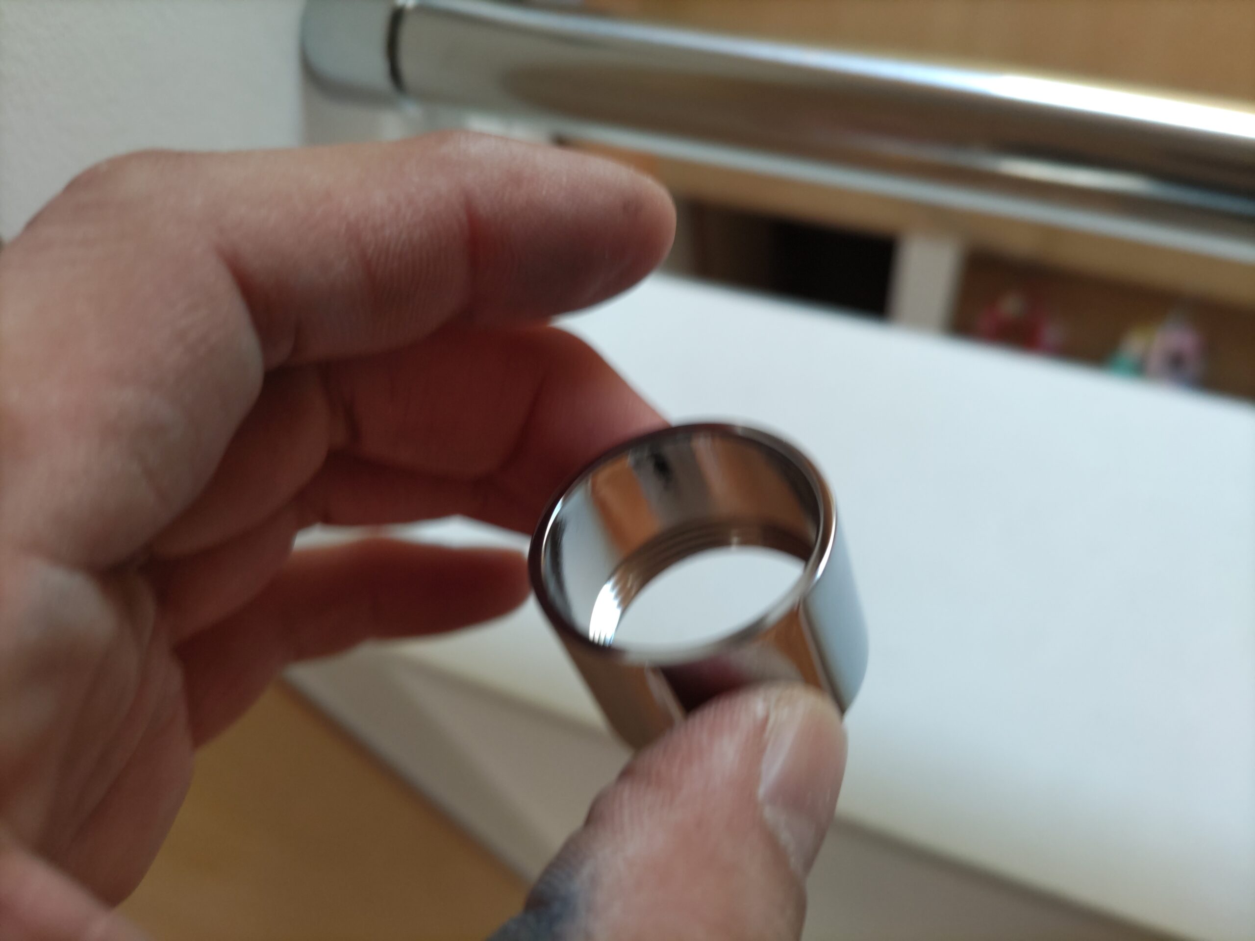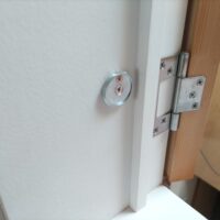 取付作業時から興味津々で、早速プッシュキャッチ金具の具合を試してみる恐怖の館の主。