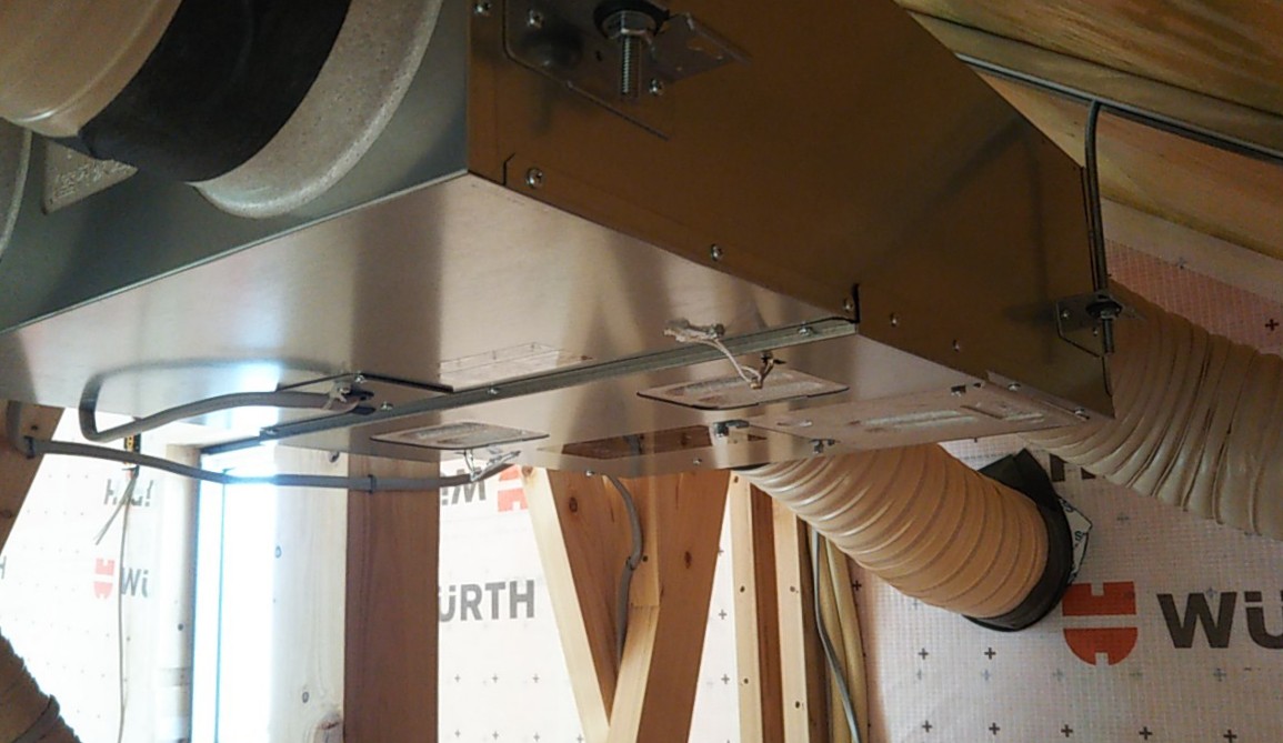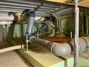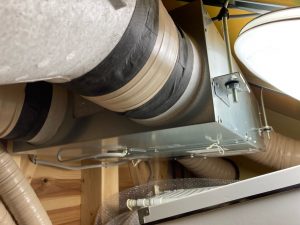 熱交換換気扇を吊り込み完了した機械室。比較的機会にスペースをとられます。