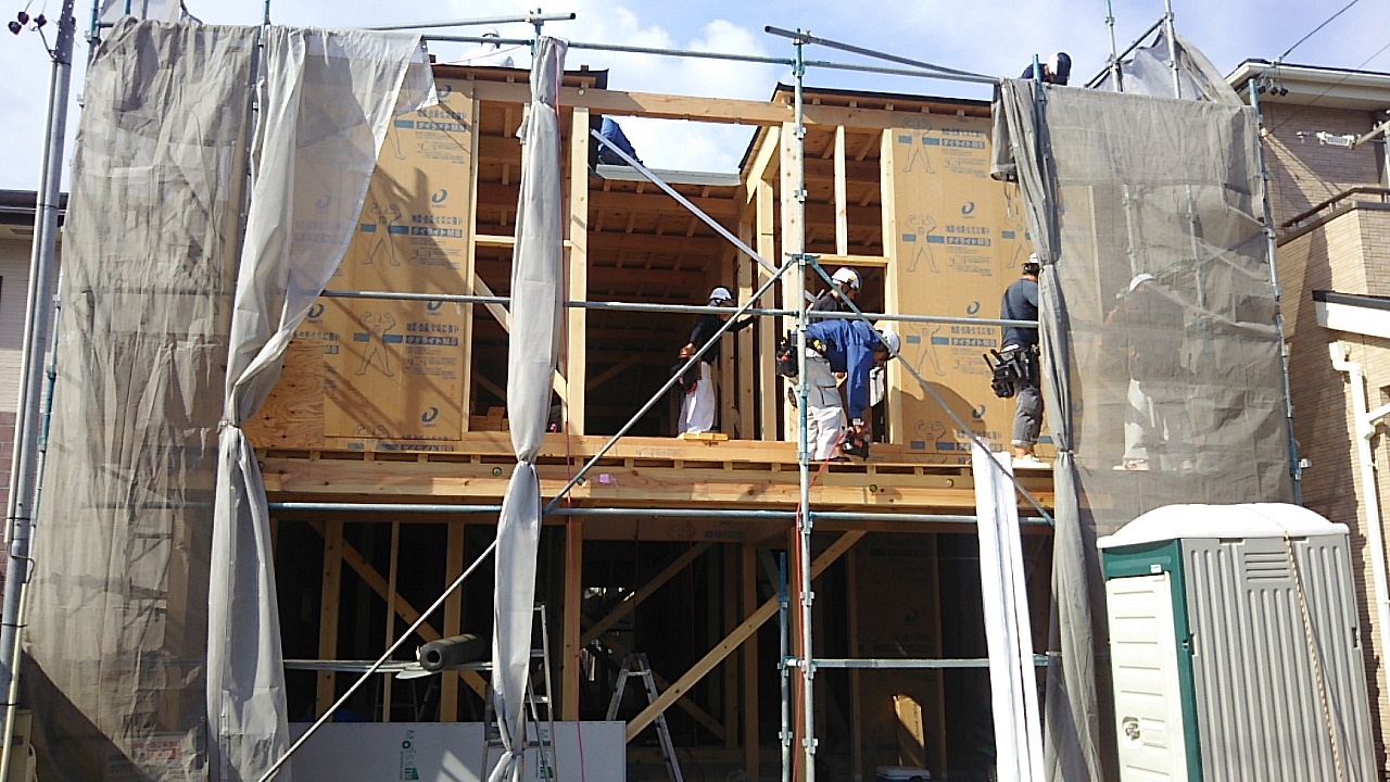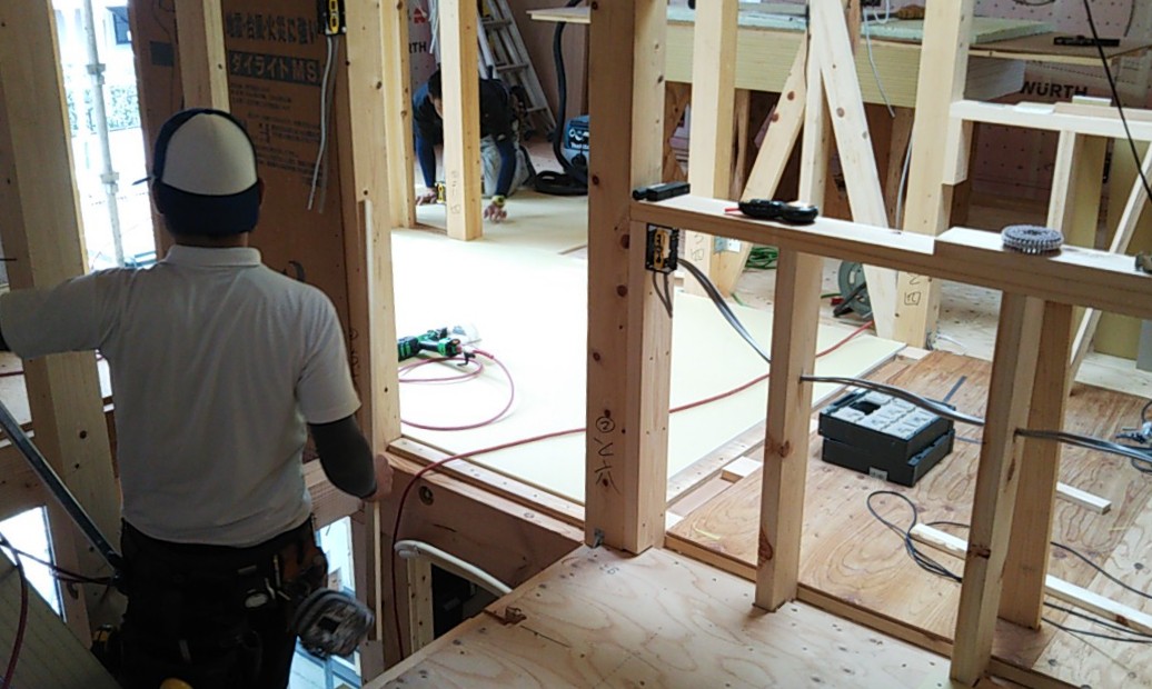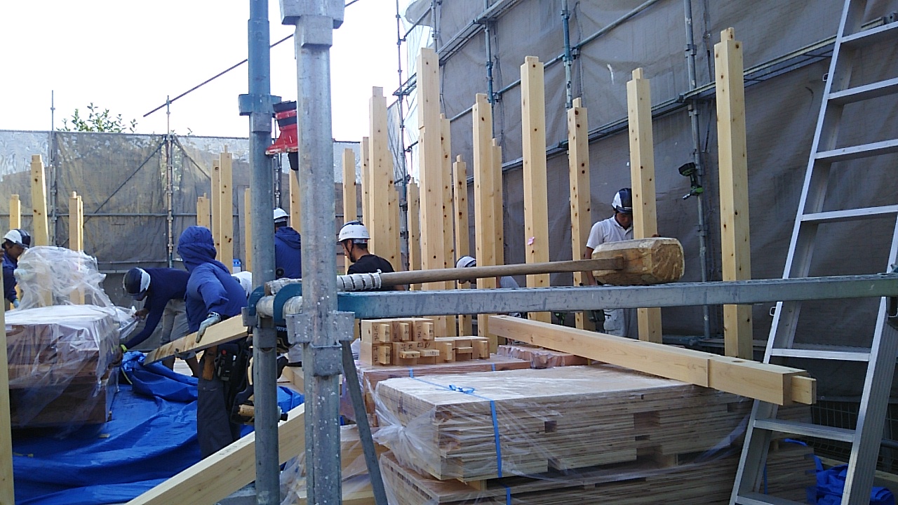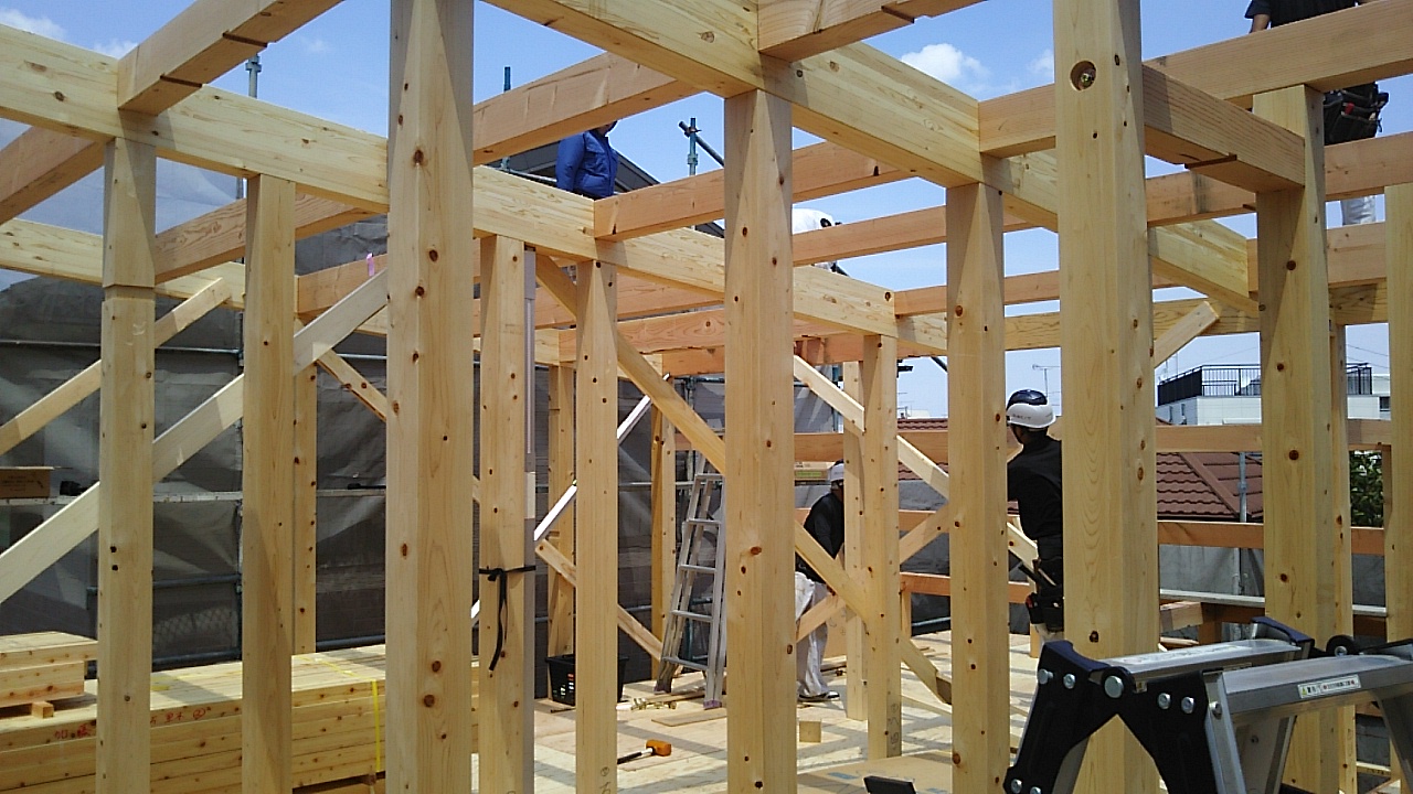 名古屋市k様邸の上棟が始まりました。連日普通に猛暑日が続く中、行われます。『猛暑日と言ったって、35℃くらいでしょ?』と、もう慣れっこになってしまいました。外部で作業をしていると、40℃だと言われてもあまり驚きません。