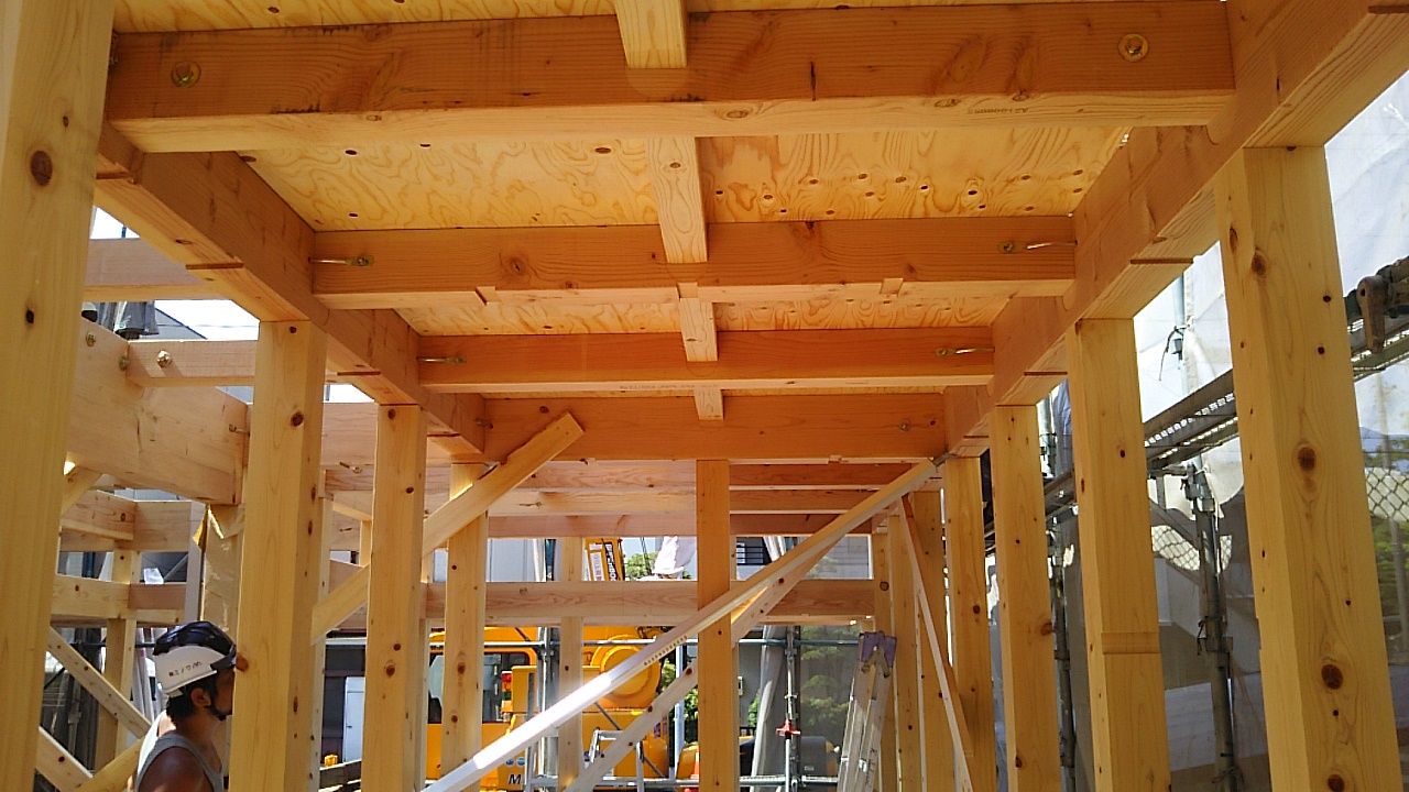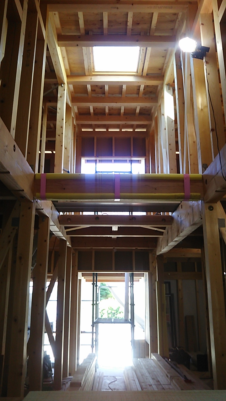 本日は指定確認検査機関と保証機構の中間検査を受けました。ミノワの担当者では普段あまり手馴れていない、設計士さんが手がける住宅。意匠的にも自由度が高ければ構造も比較的アクロバットですが、今までの自分の経験値を信じて構造体や金物の設計を行いました。仕上がれば壁や天井に隠れて見えなくなってしまう部分に人知れぬ無数の試行錯誤と検討の結果が詰まっています。