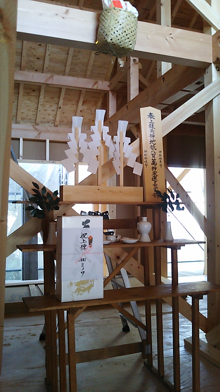 タイトな敷地条件の中でのチャレンジングなプラン。その後、工事に立ちはだかる豪雨、台風、酷暑など幾多の困難を乗り越えて、上棟式までたどり着きました。k様本日は誠におめでとうございます。