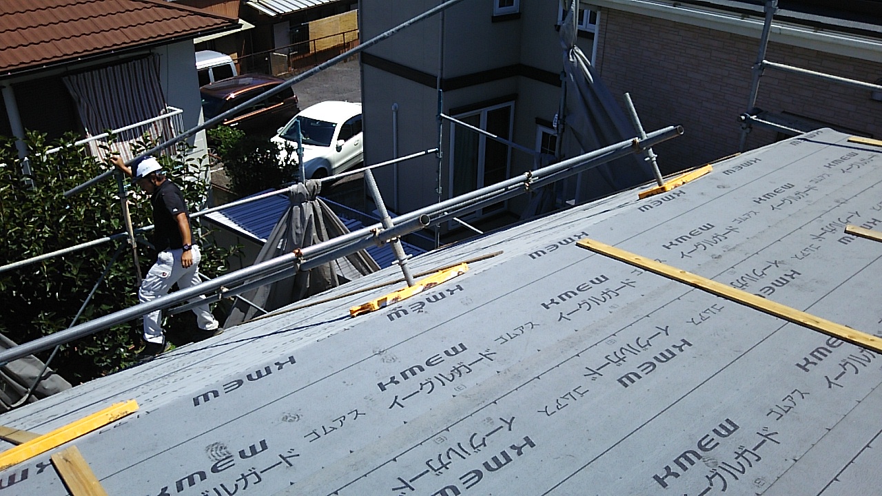 本日名古屋市では気温39℃を超えた模様ですが、遮るものの無い現場の最上階、屋根の上ではそれ以上の温度でじりじりと首筋が焼かれていきます。下から見上げていても、靴底の薄い作業靴ではアスファルトから伝わる熱でじりじりと足裏を焼かれていきます。