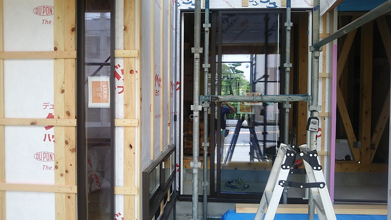 サッシのガラスが納まり、内部では断熱材、シートの施工が進んでいき、徐々に住宅が高気密高断熱化されていきます。酷暑の8月も過ぎ去り、現場内も涼しく作業できると良いのですが。