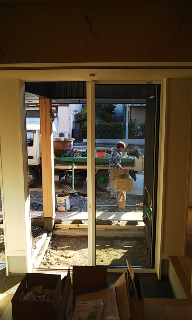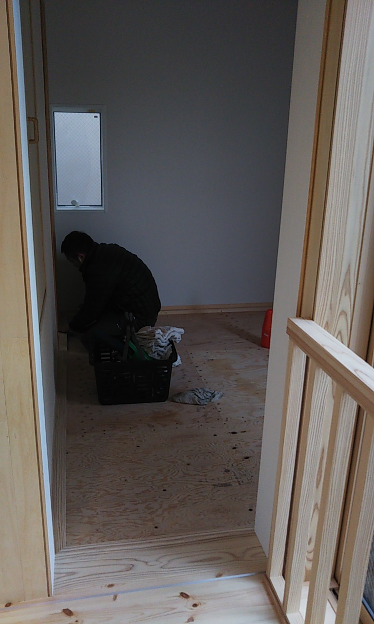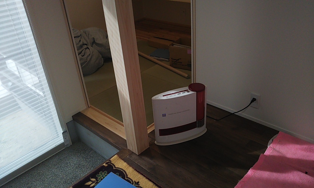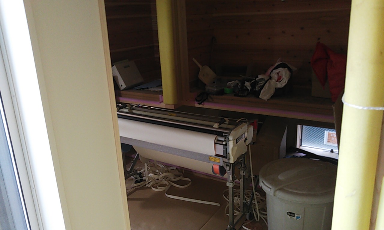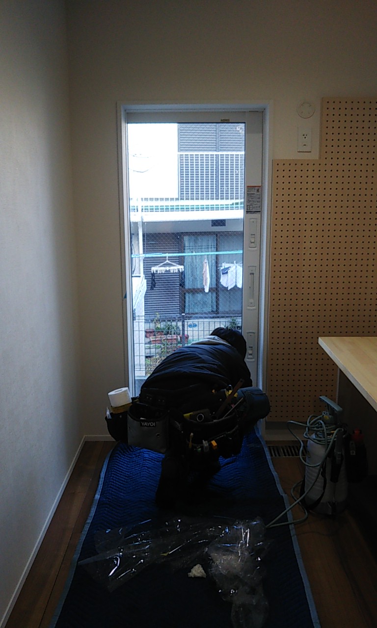 まだまだ細かい物干金物などを取り付ける作業が残っています。それらをいろいろ取り付け作業するうち、外部は寒いのかもしれませんが、内部では先ほどのヒーターを2台焚いているので暑いのなんの。