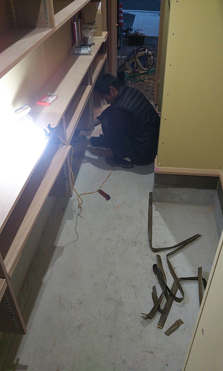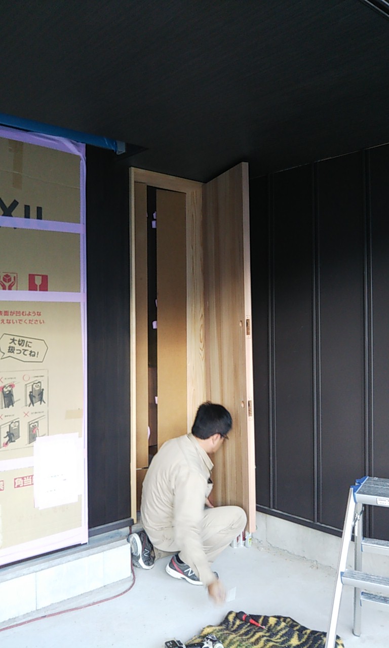 いよいよ現場でk様にお引き渡しの日がやってきました。朝から寒くなる事を予想して事務所から暖房機を搬入、k様も同じ事を考えていたようでガスファンヒーターを持ってきてくださいました。先日せっせとまとめた取扱説明書をお渡しし、無事にお引き渡し(第一段階)を終えました。
