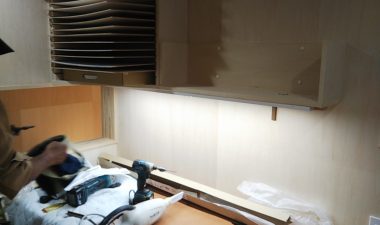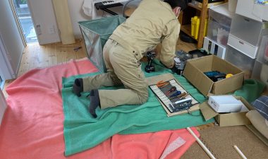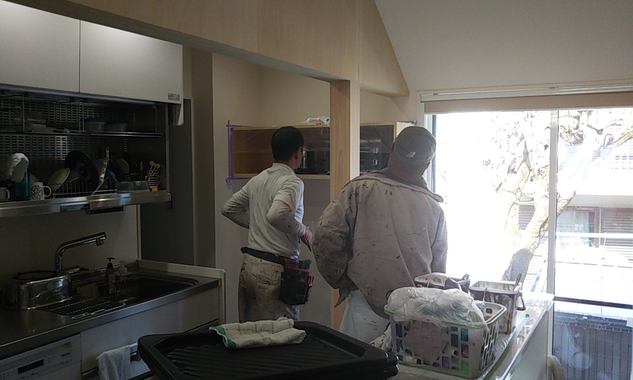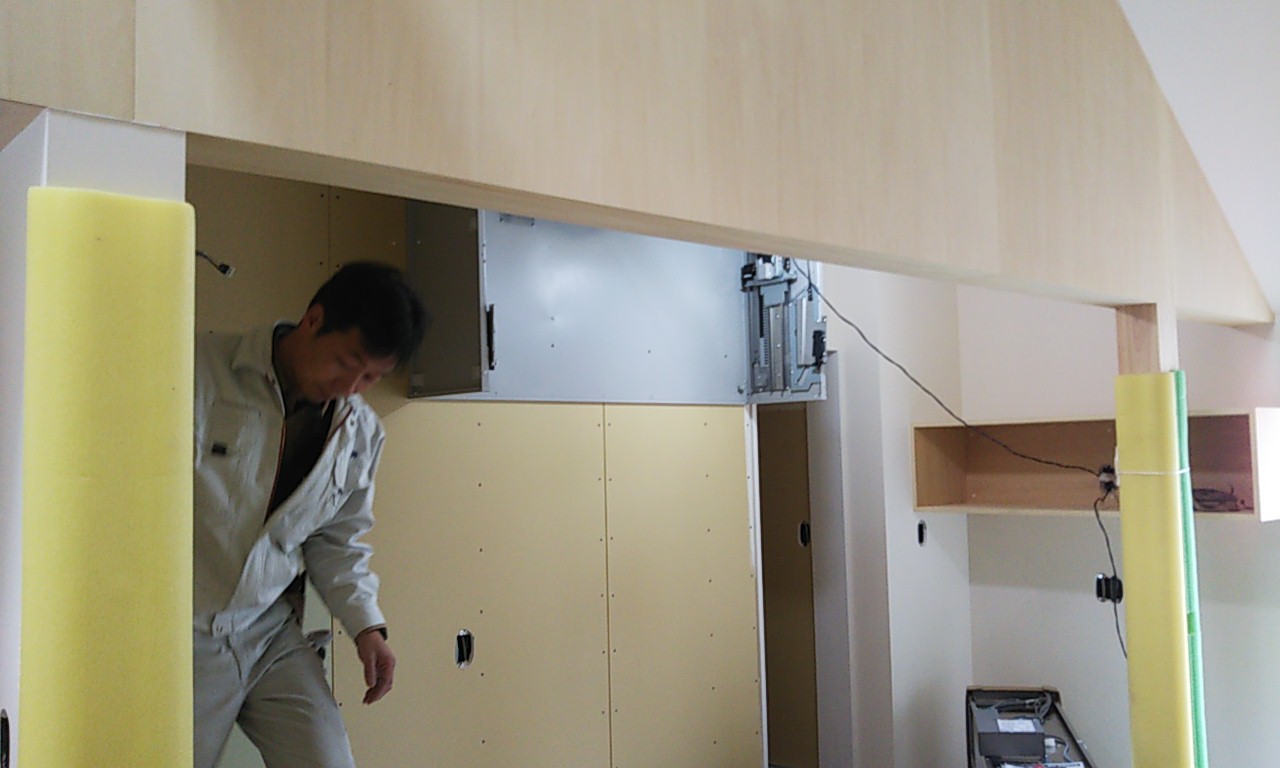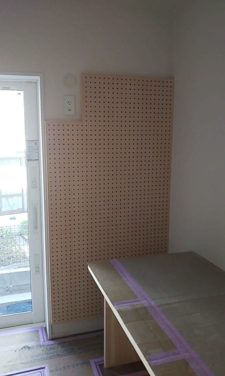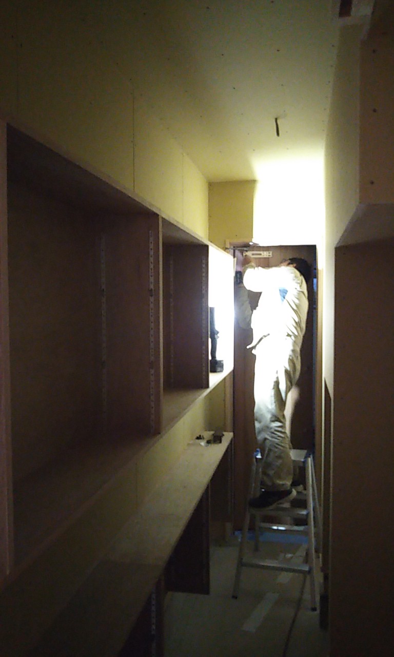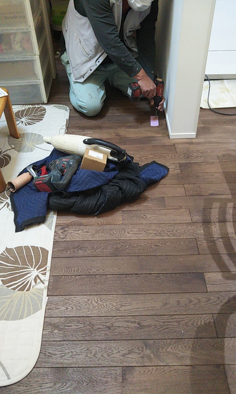 可動棚の板を追加したり、固定棚の位置を少し移動したりする作業です。設計段階、施工段階で『これで良し』と思った配置、寸法でも実際に生活してみると『棚があと一枚欲しい』『もう10cm移動したい』など詳細な希望が新たに生まれます。『イエは三軒建ててやっと満足のいくものができる』とはよく言ったものです。