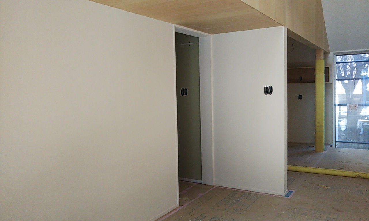 各居室の建具も収められ、それによって視覚的に室内空間の大きさも区切られ、徐々に完成イメージに近づいてきました。