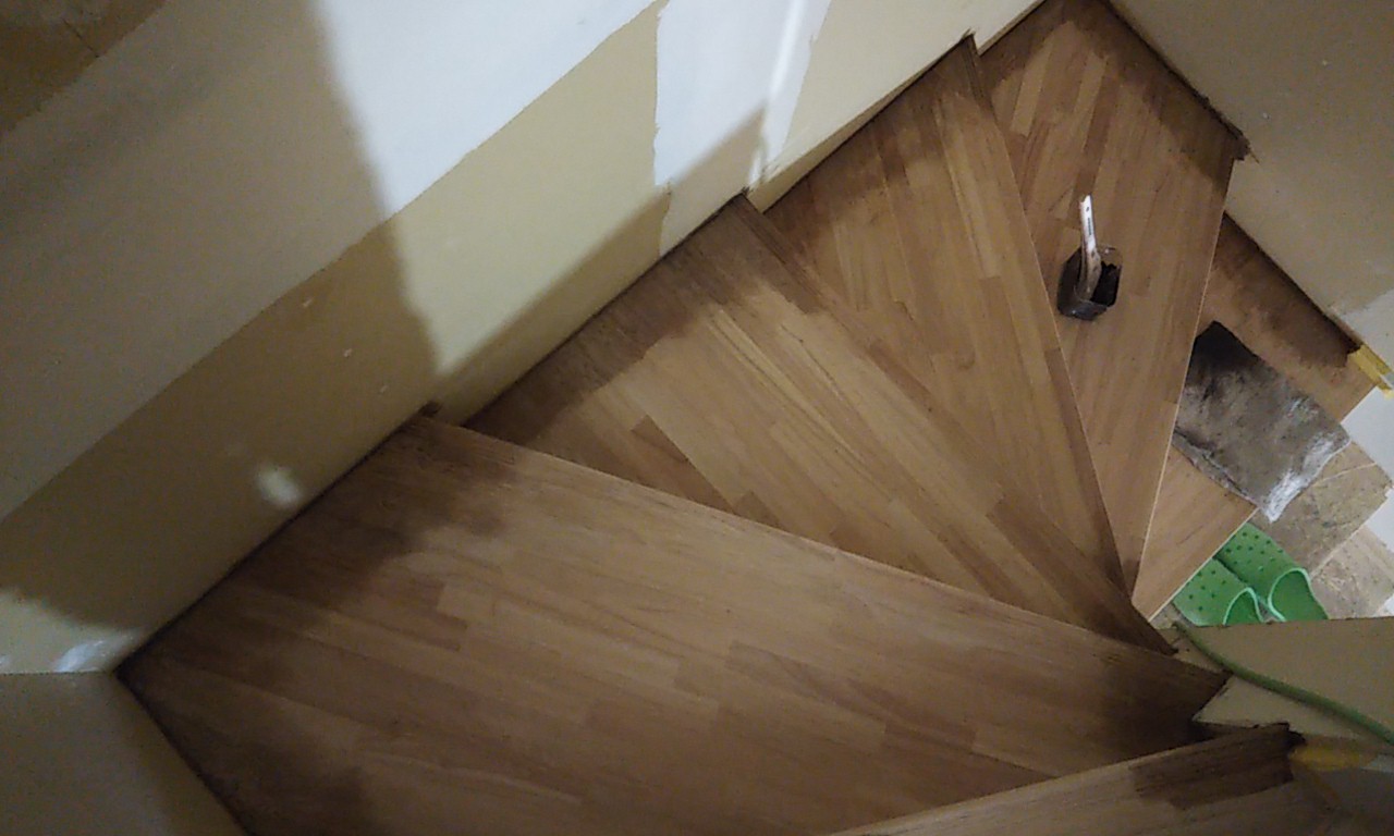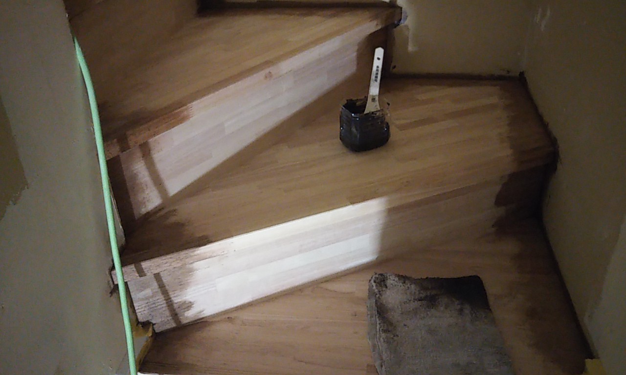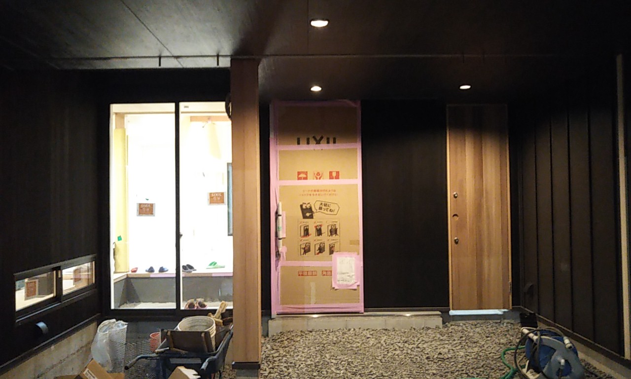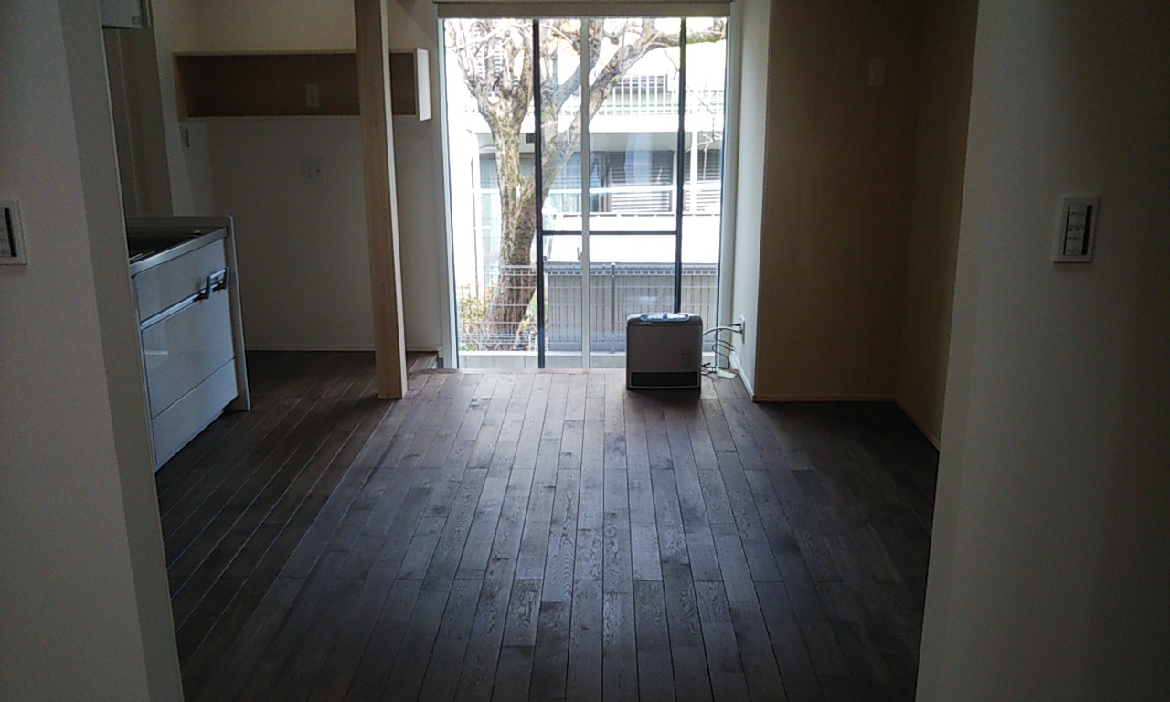 内部のクリーニング工事が完了。床は元々どちらかと言えば白に近い木目の物でしたが、濃いめの色に塗装されました。外壁のカラーイメージに近くなっていっています。