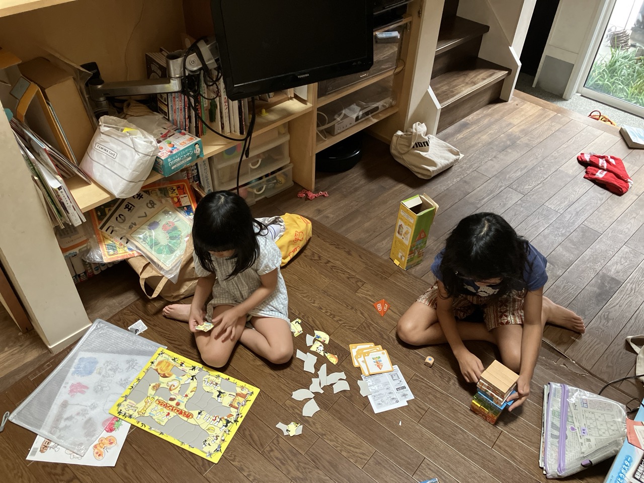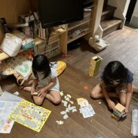 施工当時小さかったsumiちゃんもあれから5年が経ち、すっかりお姉さんになっていました。妹のutaちゃんがあの頃のsumiちゃんにそっくり。中央のリビングと吹抜空間はすっかり姉妹の遊び場所になっています。