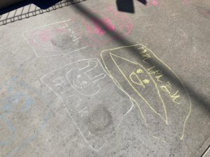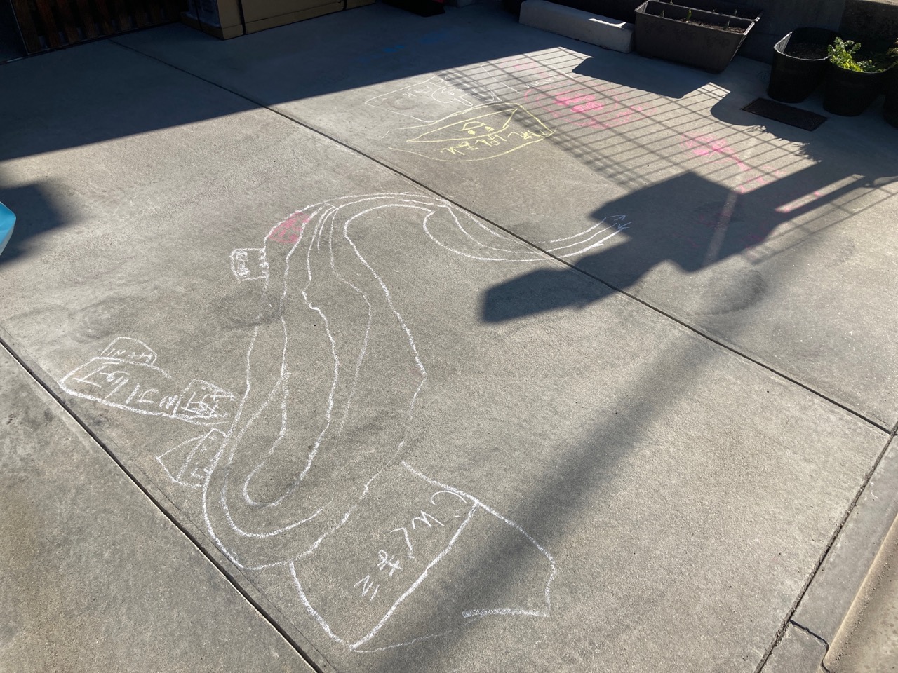 久しぶりにk様邸を訪れると、おや?駐車場のコンクリートに現代アートが。来月から新1年生になるsumiちゃんの力作です。