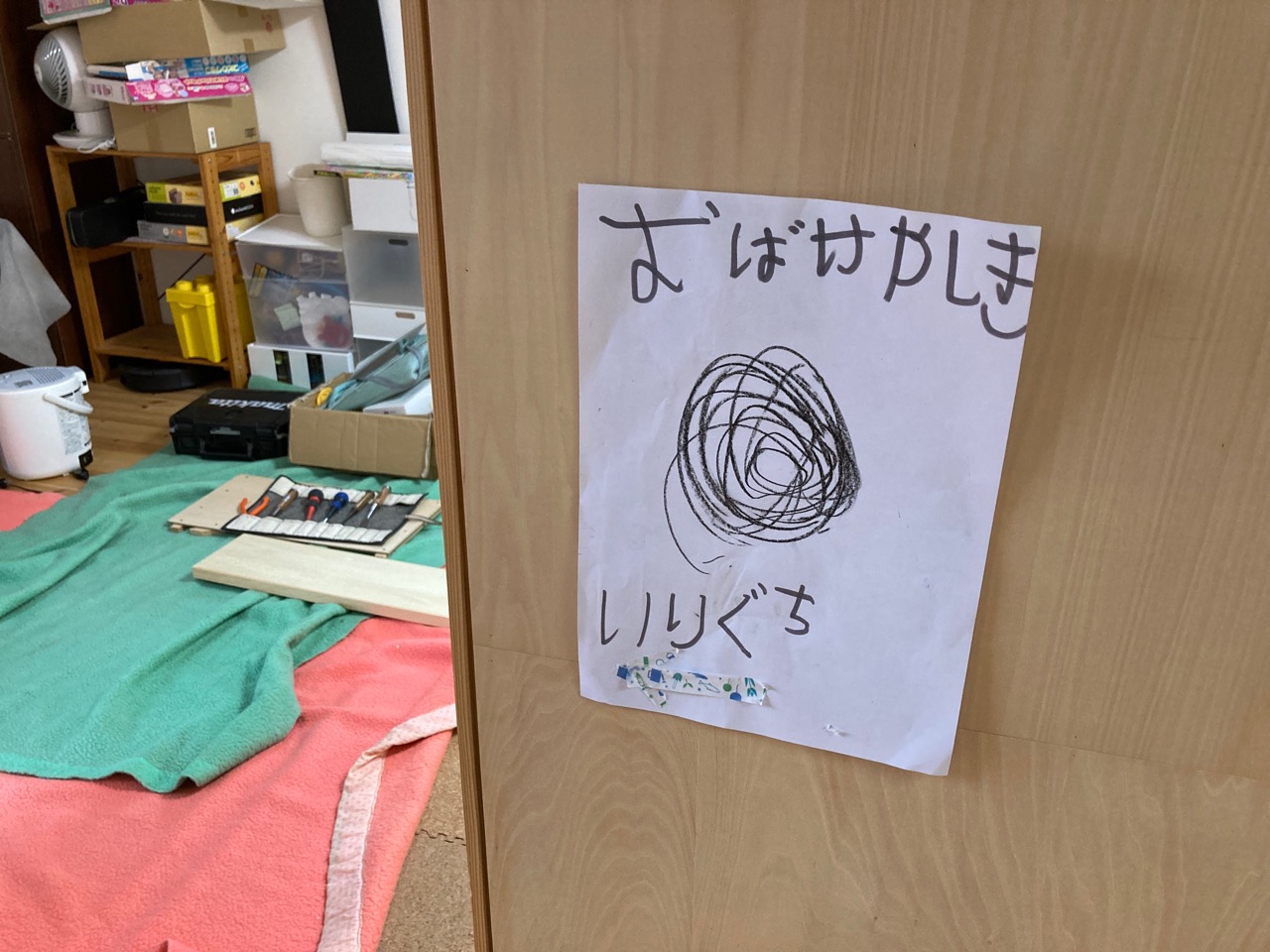 先日採寸した建具を取付けにうかがうと、現場には注意書きが。