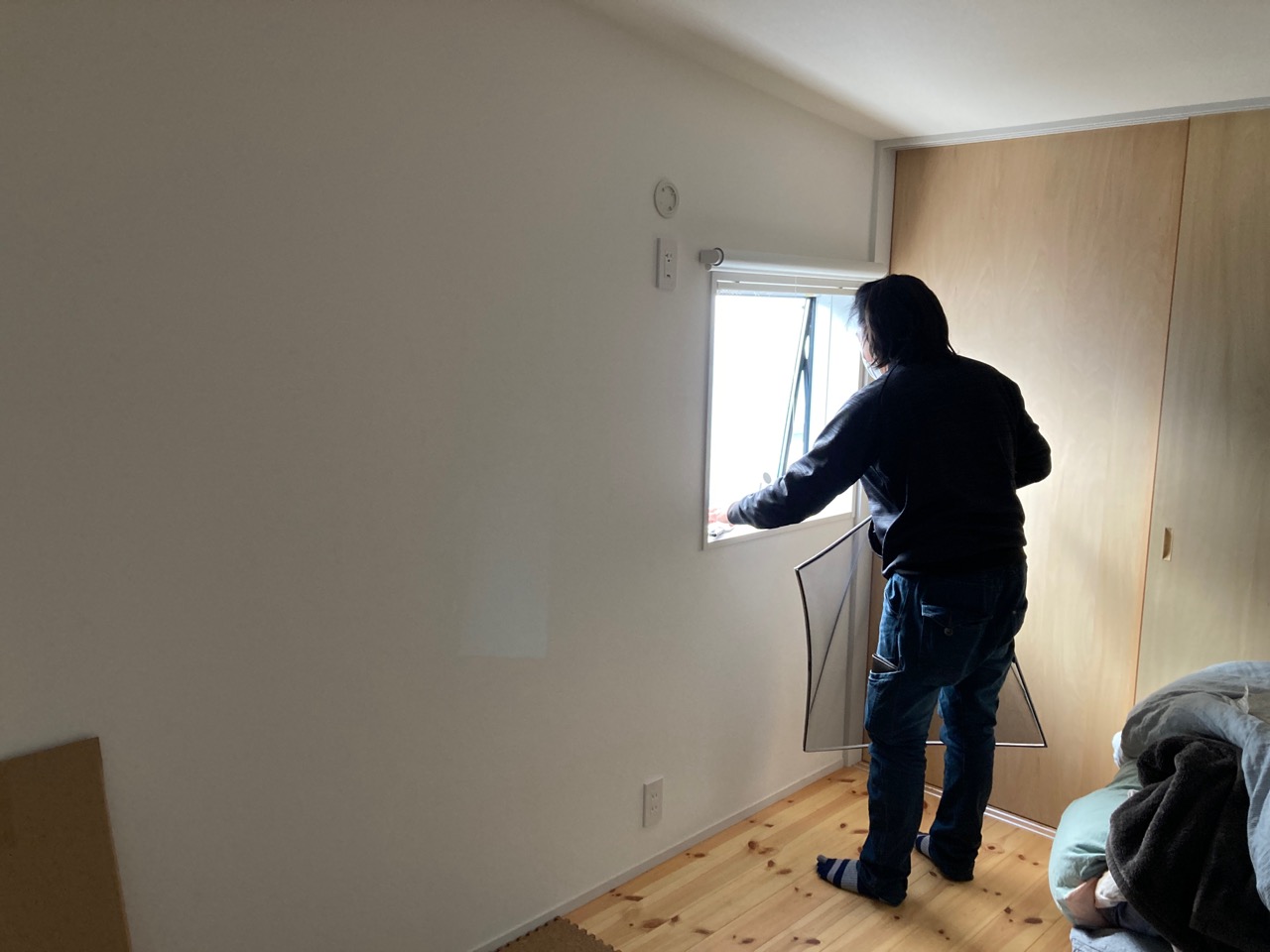 諸事情により新築当時は取付けていなかった網戸を各室取付にうかがいました。主要な開口部には最初から網戸は取付けていたのですが、採光だけ、と割り切っていた部分には取付けていませんでした。これで夏季でも虫など気にする事なく採風のために窓を開ける事ができます。