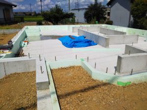 丹羽郡大口町の現場です。基礎下の捨てコンが打たれ、家が建つ面が良好な状態になりました。