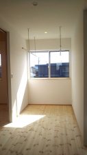 2階のホールには、陽の当たる場所なので広い物干しスペースがあります。雨降りや花粉の時期なども便利です。