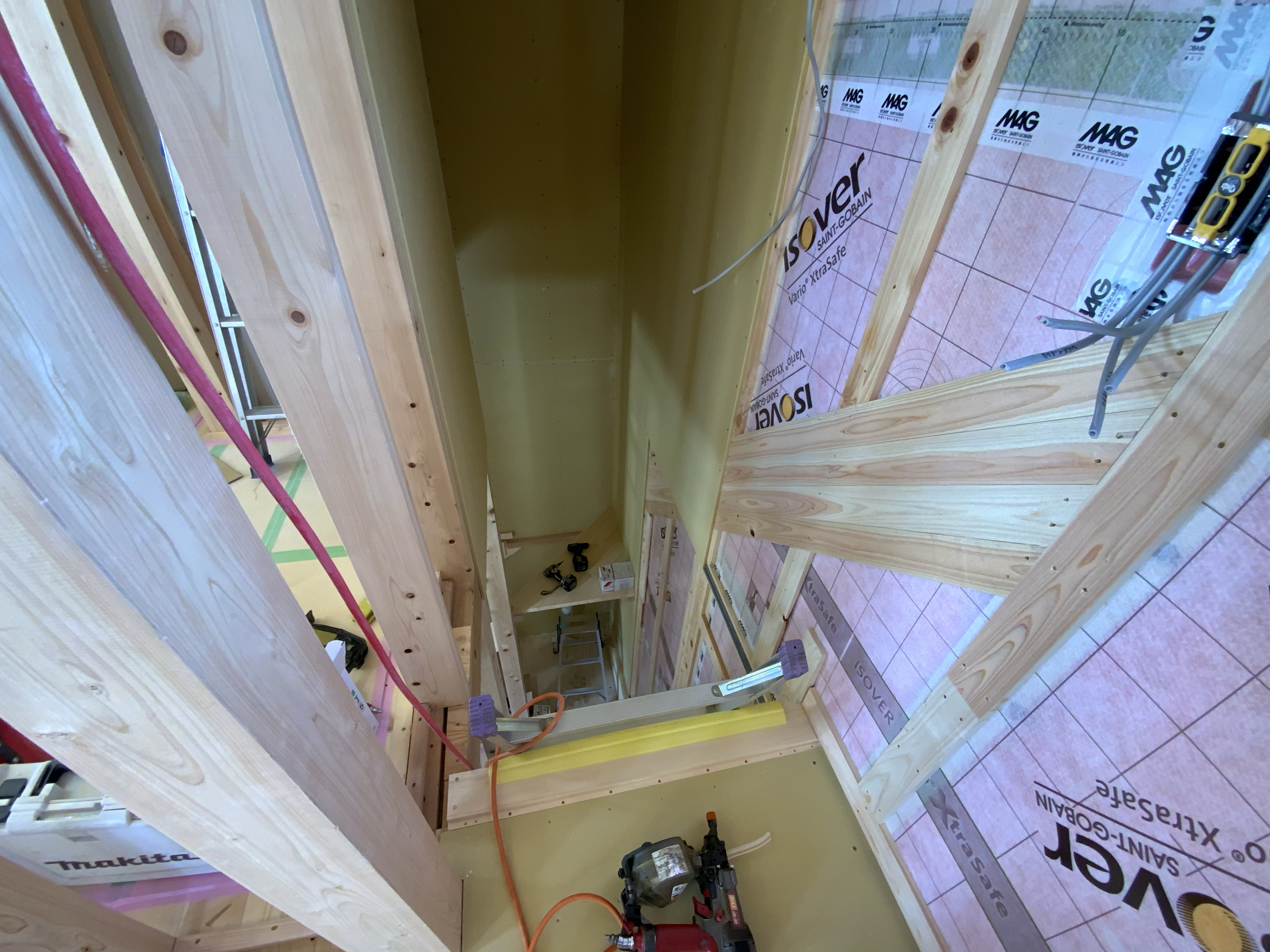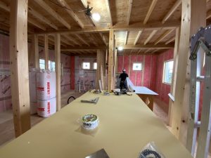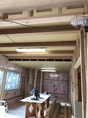 s井大工さんはこれから2階の床(パイン材)を張り進めていきます。