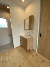 1階はナラ材、2階はパイン材です。水回りはお掃除しやすく水に強いサニタリーフロアです。