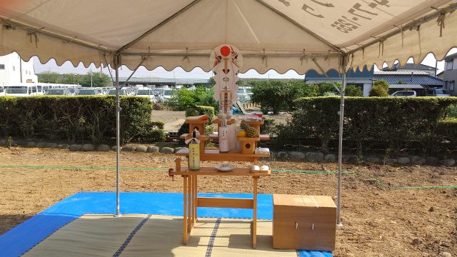 本日は地鎮祭。日中は30度にもなるとの朝のニュースの通り、良いお天気に恵まれました。私達も、無事に工事が完了する事とti様が新しい家でさらに楽しく過ごされる事を祈願いたしました。