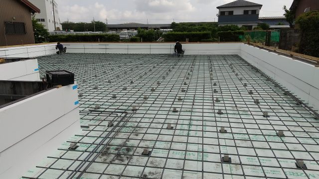 弊社の天才hさんの厳しい配筋検査を受けて、底盤のコンクリートを打設します。