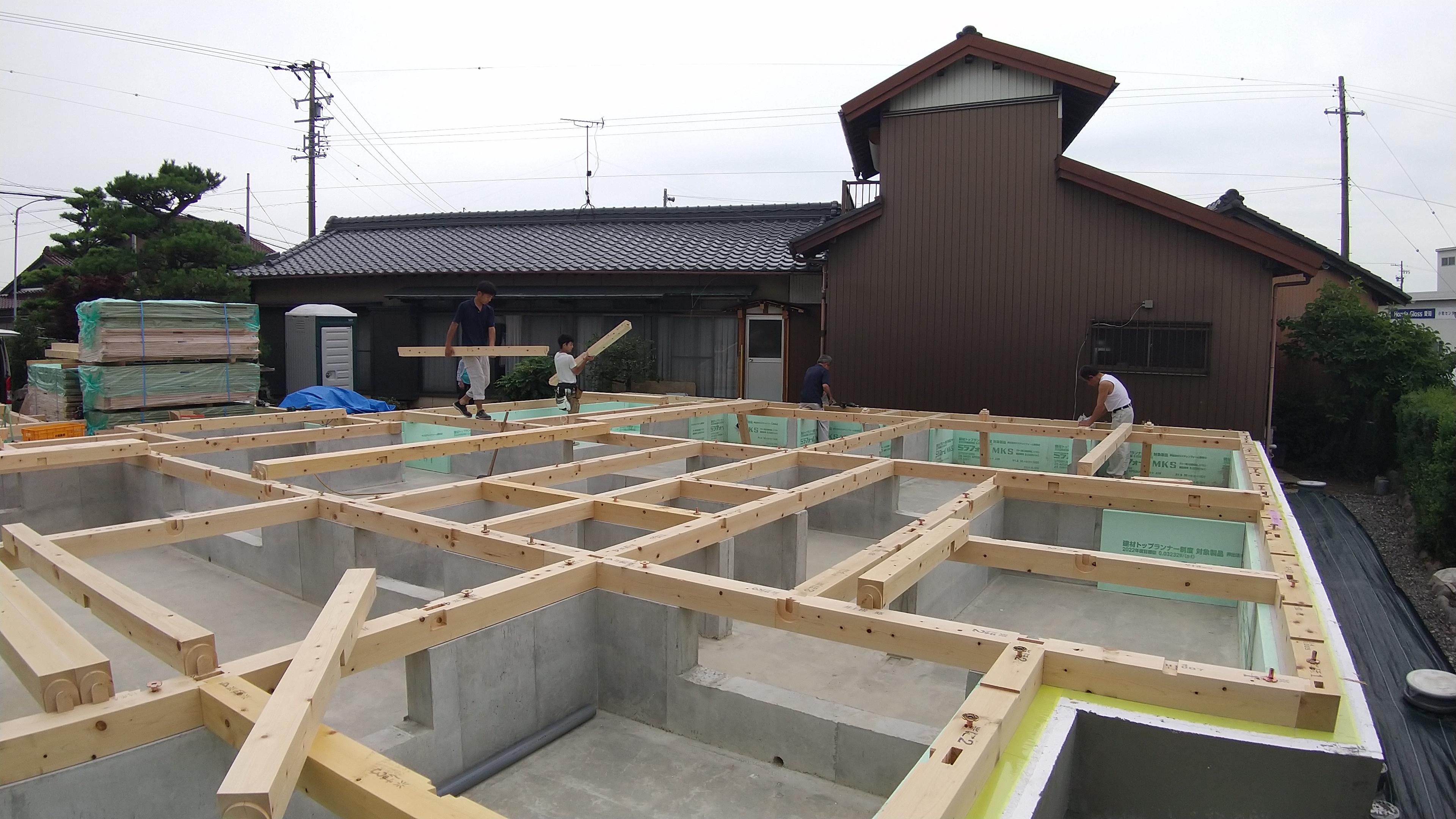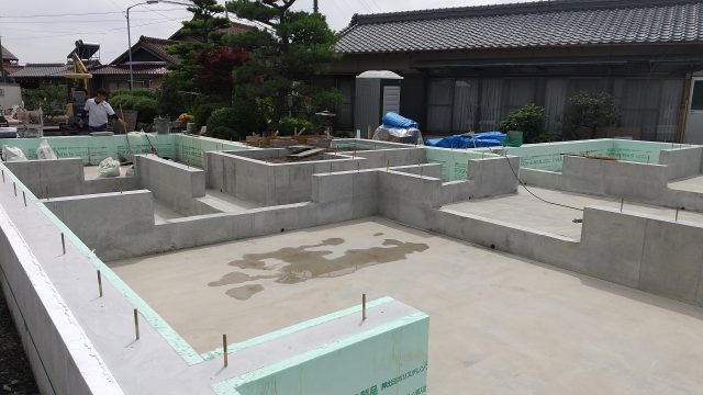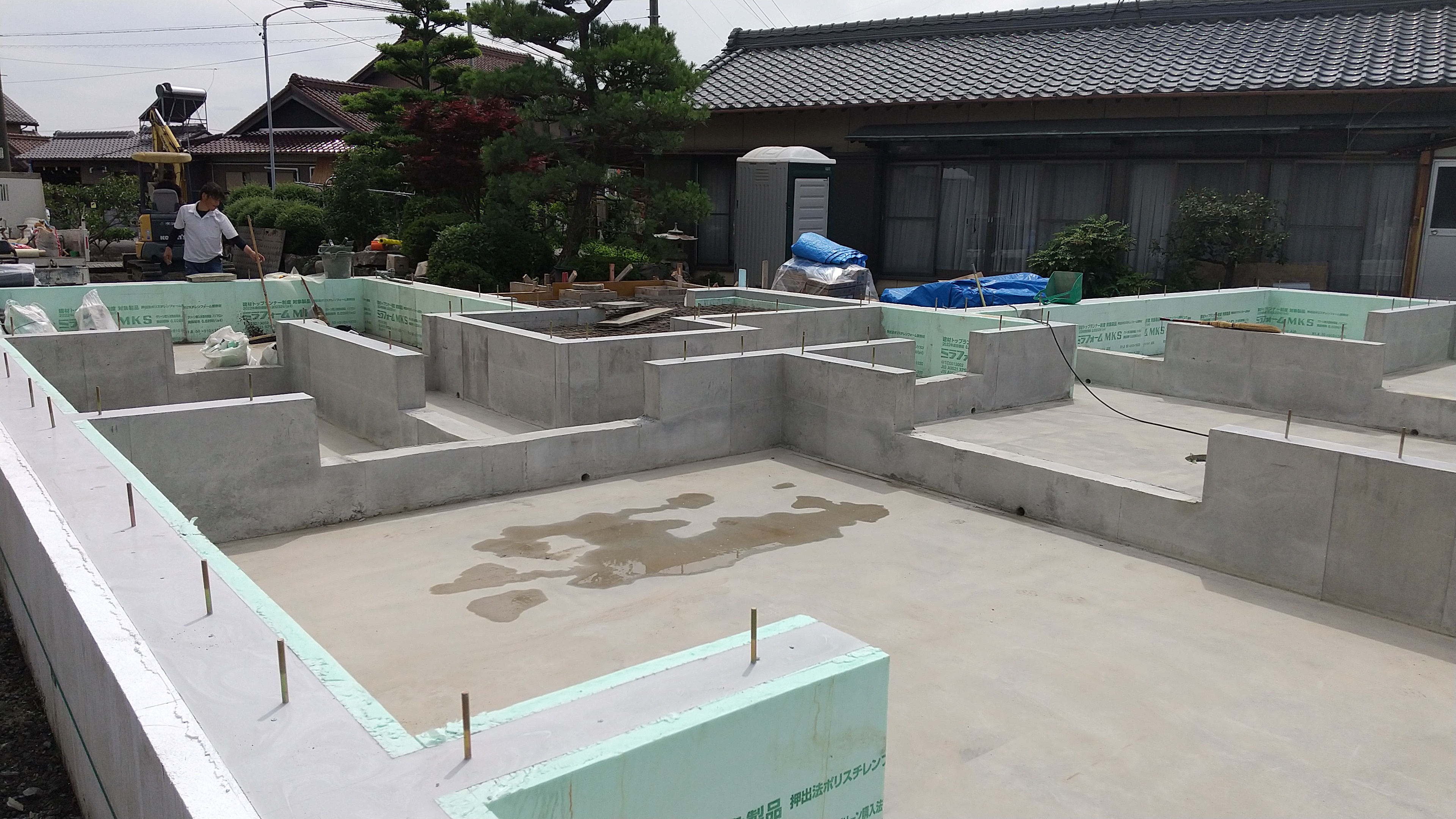 ついに東海地区も梅雨入りしてしまいました。昨日雨の合間に、立上りのコンクリートを打設しました。i様のお母様は一日でも早く家に入られるのを毎日楽しみにしているので、雨が降ると職人さん達が来られないので寂しそうです。棟上は27日。なんとか良いお天気になりますように。