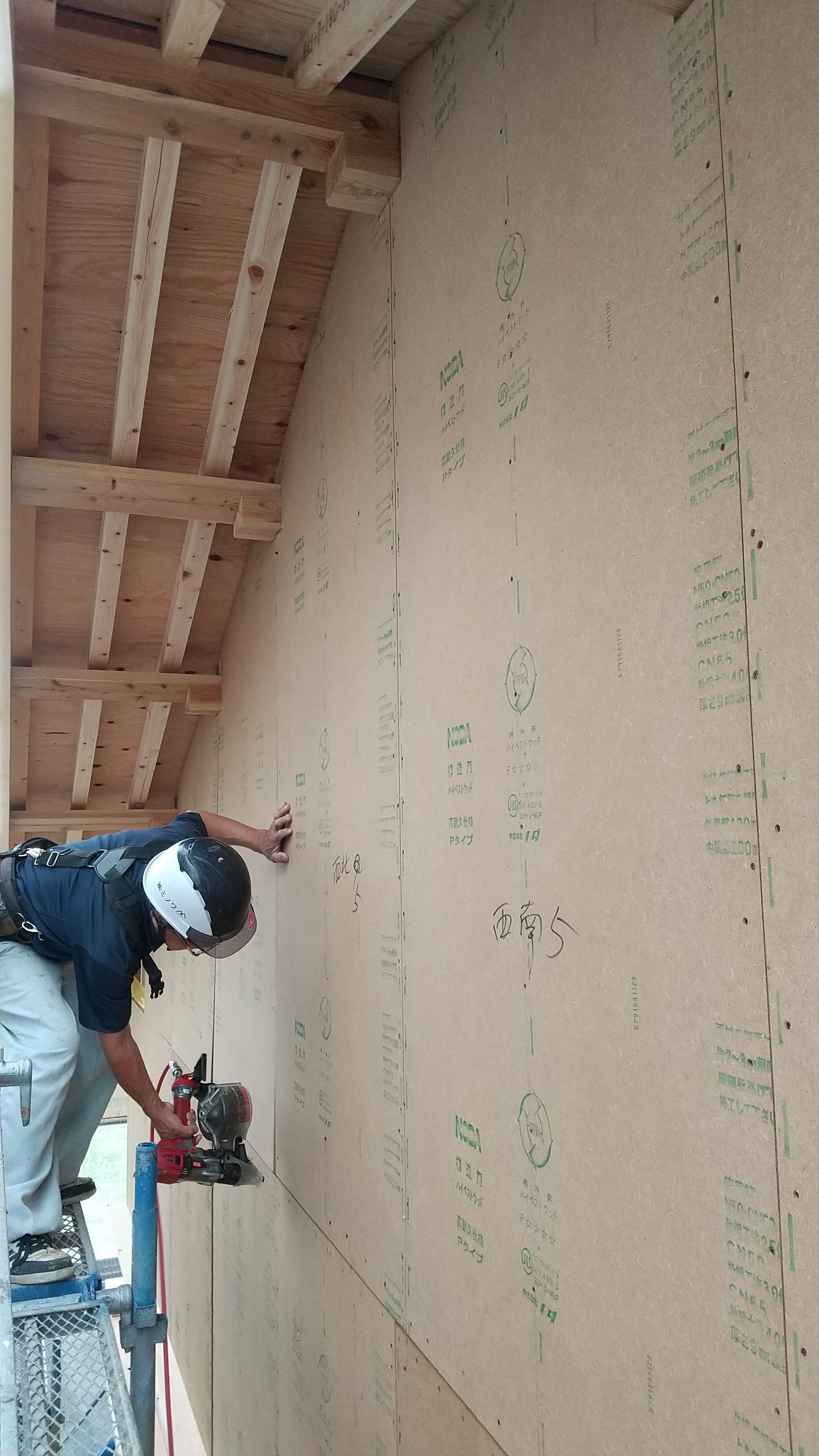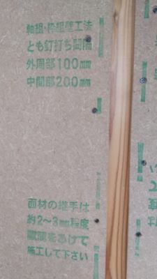 こちらは、耐力面材に書かれている文字です。施工注意点が商品自体に書かれており、とっても親切。これなら、間違いは無いですね。いいね~を押したい気分です。今日は帰り際に、k棟梁から「また来てね」と言われました。お邪魔じゃない様で嬉しいです。