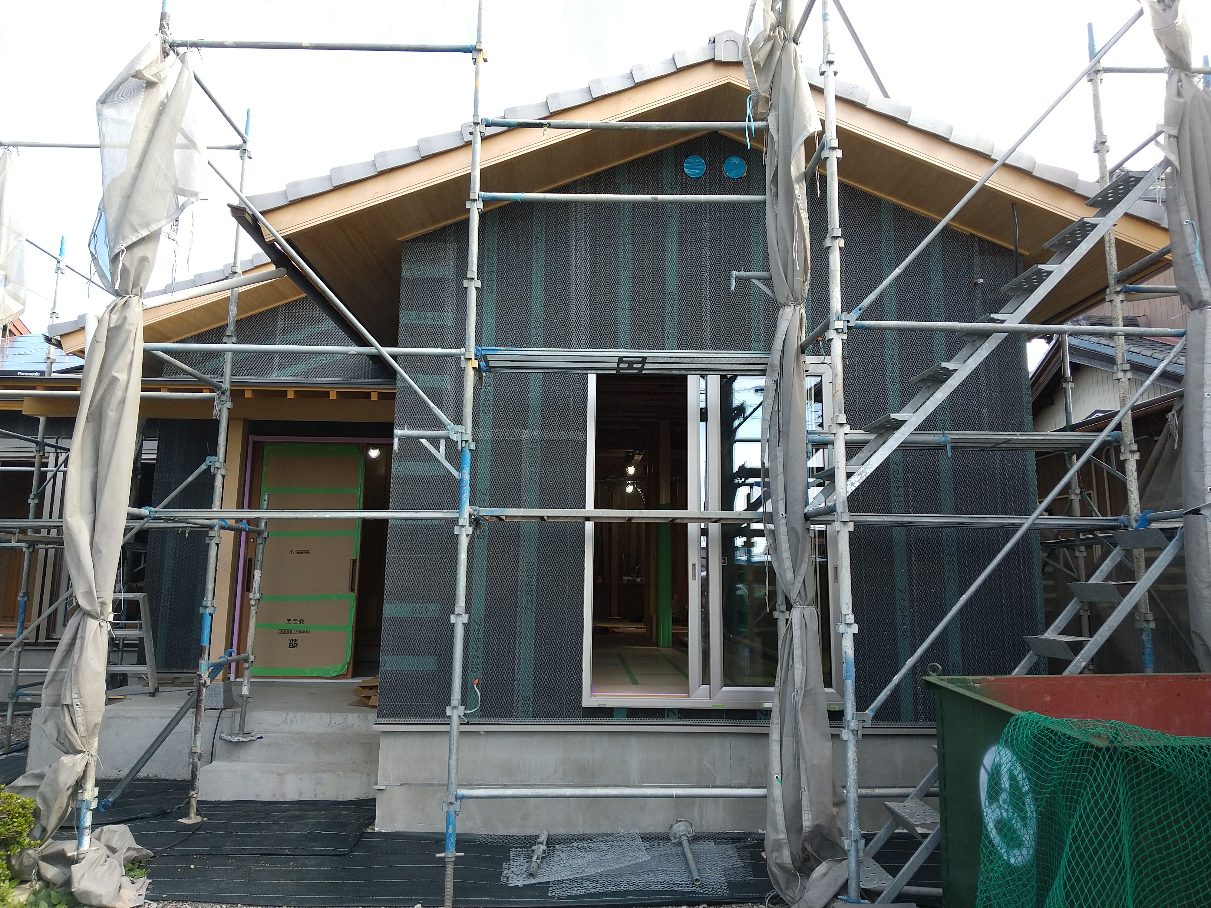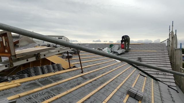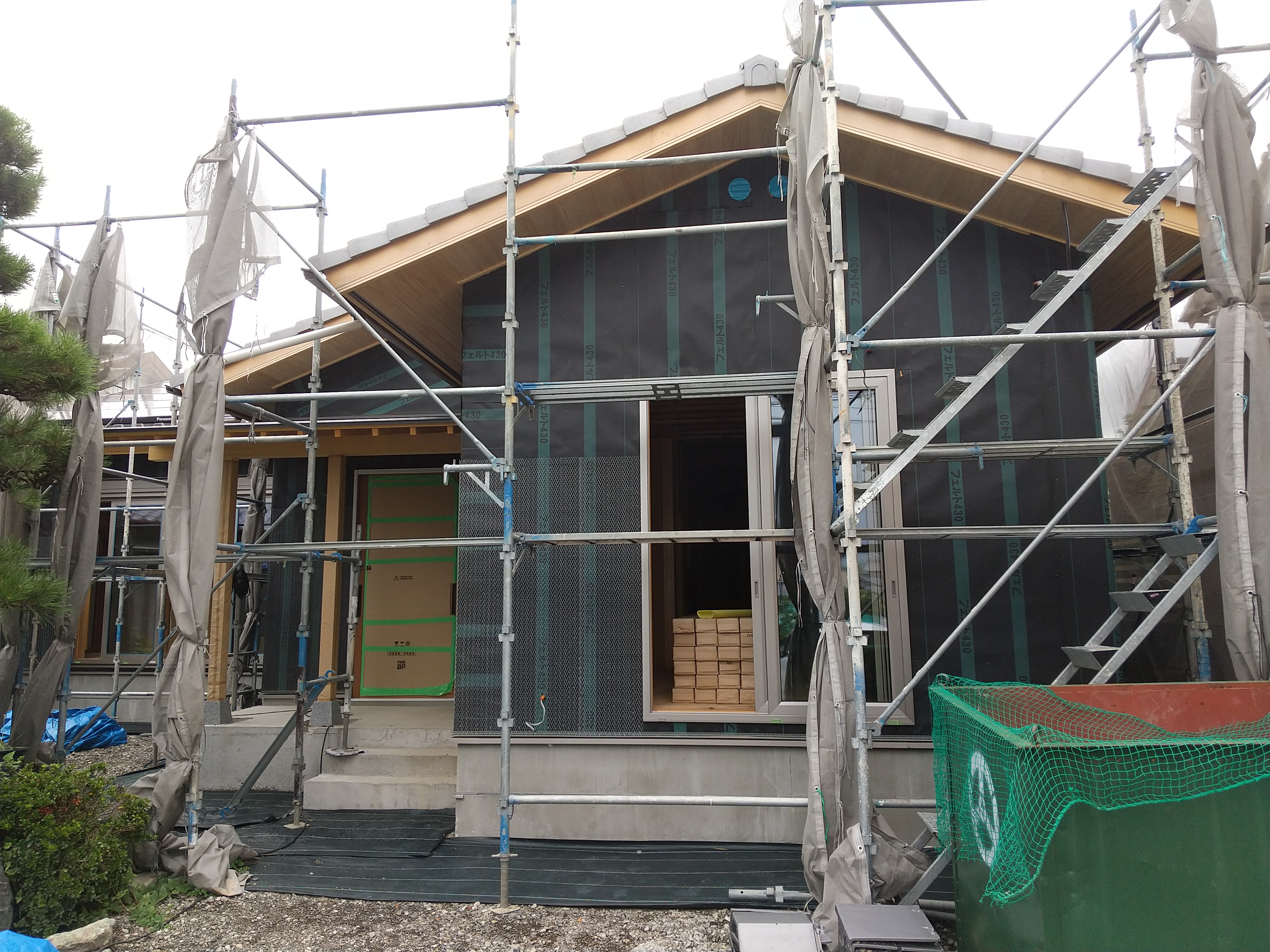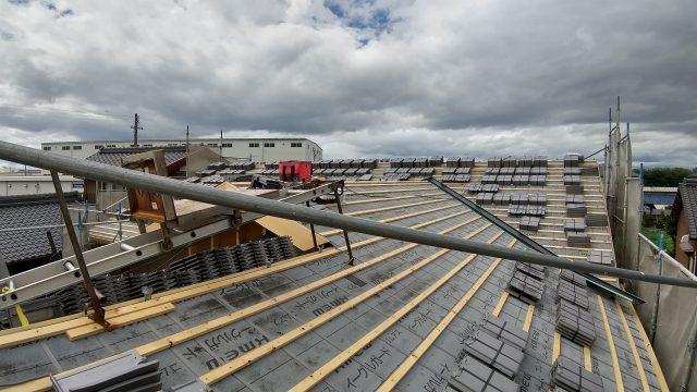 昨日に続き今日は雨も降らず、作業しやすいお天気でした。瓦屋さんも作業が捗り、もう直ぐ屋根が葺き終えれそうです。